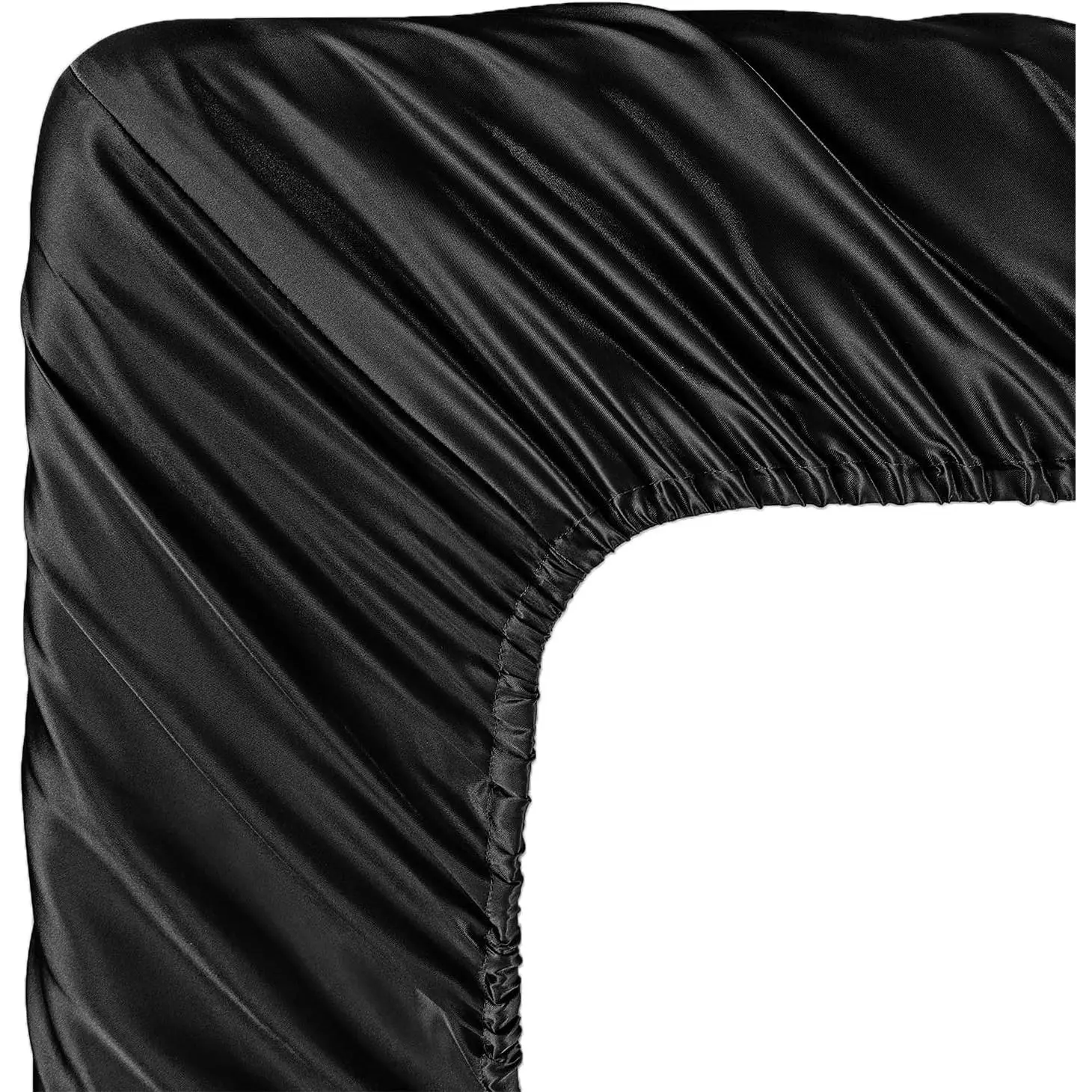 3-Piece Set Queen Fitted Sheet & 2 Pillowcase, Black Soft Fitted Bottom Sheet, Wrinkle Free, Fade Resistant, Deep Bed Sheet (Deep Up to 15")