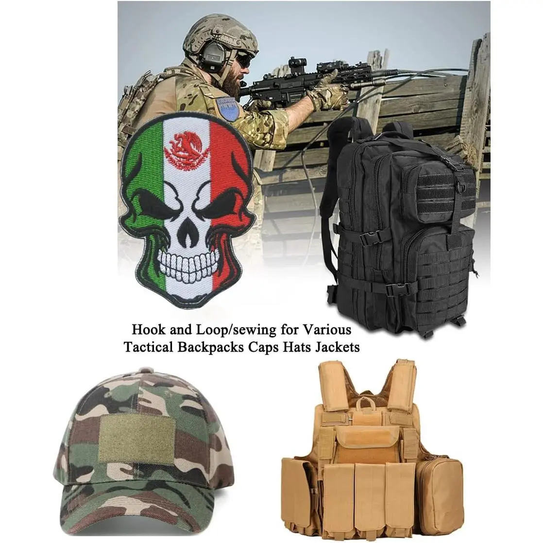 AliPlus Mexican Flag Patches Skull Patches Embroidered Patch Military Tactical Patch Morale Patches Hook and Loop, Using exquisite Exquisite embroidery technology, it is a perfect clothing personality accessory, Hook backing for attachment to Tactical Hats and Gear,It can Hook and Loop or sewn on clothes, backpacks, hats and other apparel textiles., hats and other clothing equipment.Show the unique you!