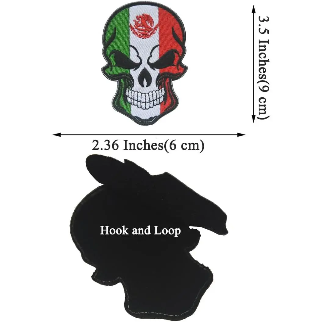 2 pieces Mexican Flag Patches Skull Patches,Size: 3.5 x 2.36 inches(9*6 cm);