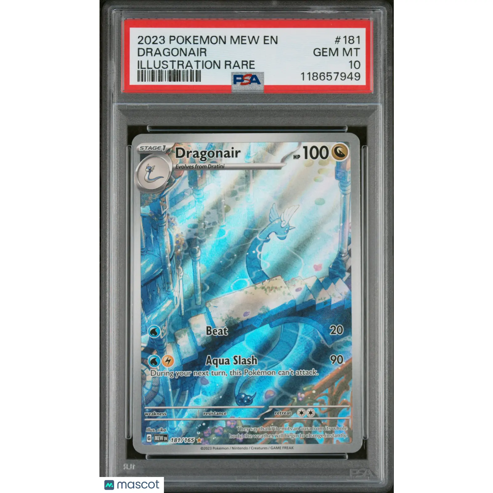 You are purchasing a 2023 Pokemon TCG—Dragonair #181 Scarlet & Violet 151—Illustration Rare Foil PSA 10. You will receive the exact item in the photographs. Thank you for shopping with us!