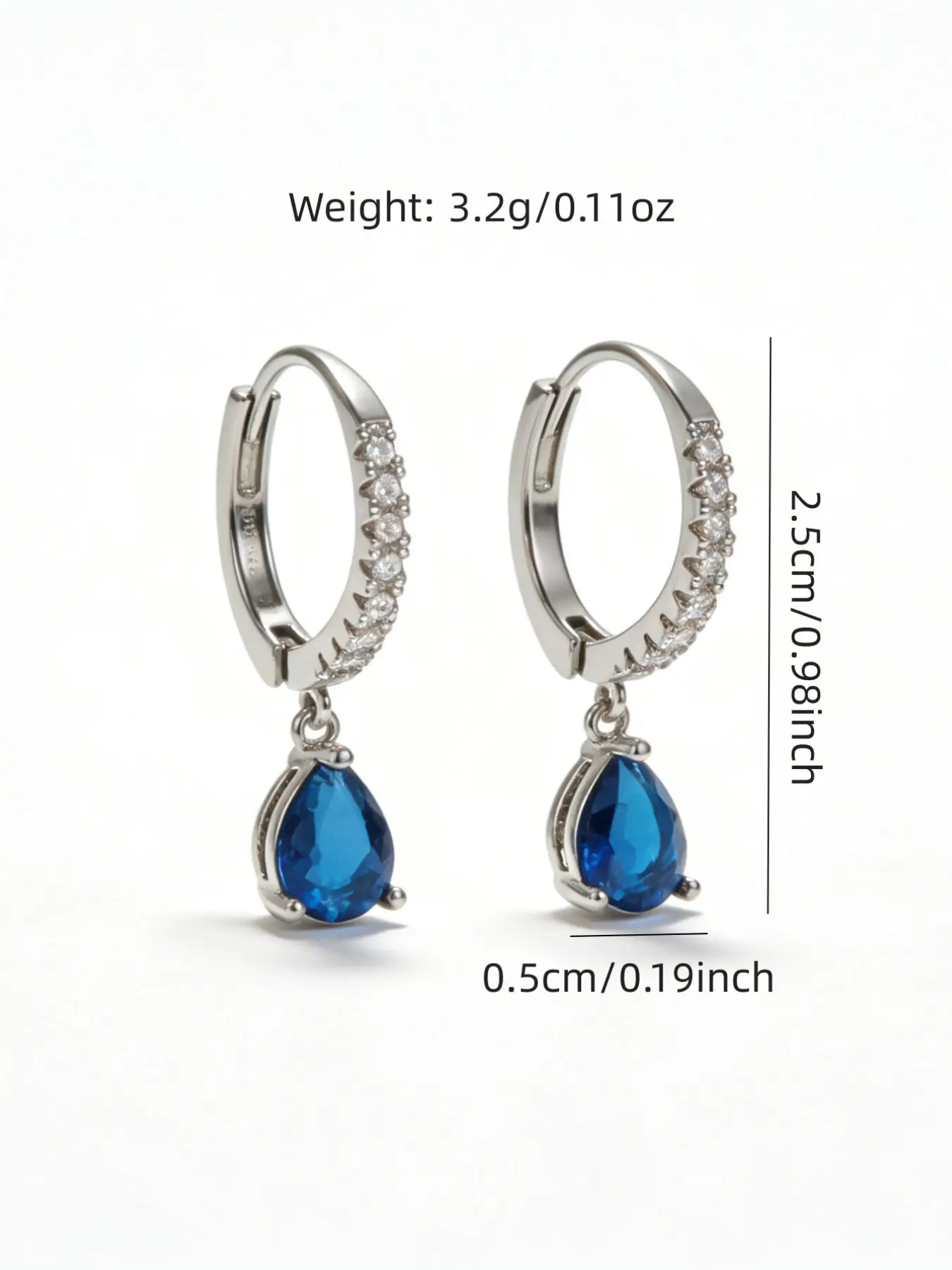 1 pair of fashionable and elegant blue tear rhinestone pendant earrings, elegant ladies' cocktail party style earrings