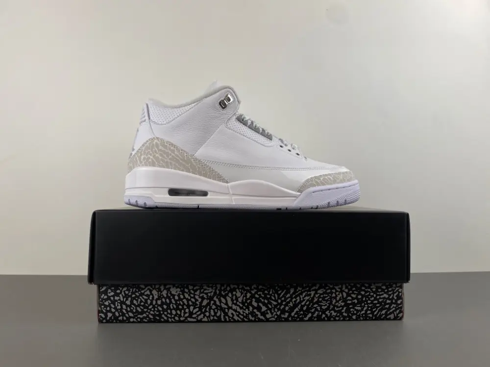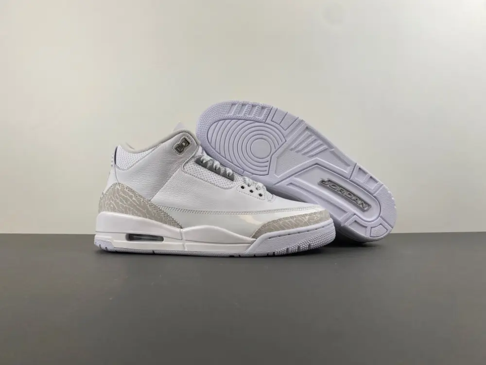 Pure White Tumbled Leather with Light Grey Elephant Print and All-White Midsole Retro Mid-Top Basketball Shoes