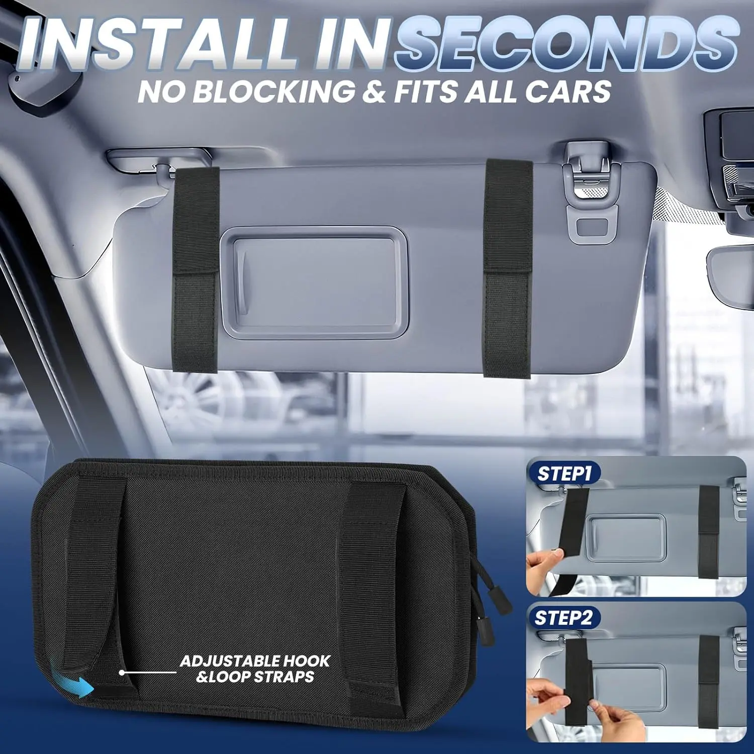 · Will this visor organizer fit my truck?Yes!It’s designed to fit most standard and oversized truck visors (up to 12 inches wide).The adjustable straps ensure a snug, secure fit without sagging.