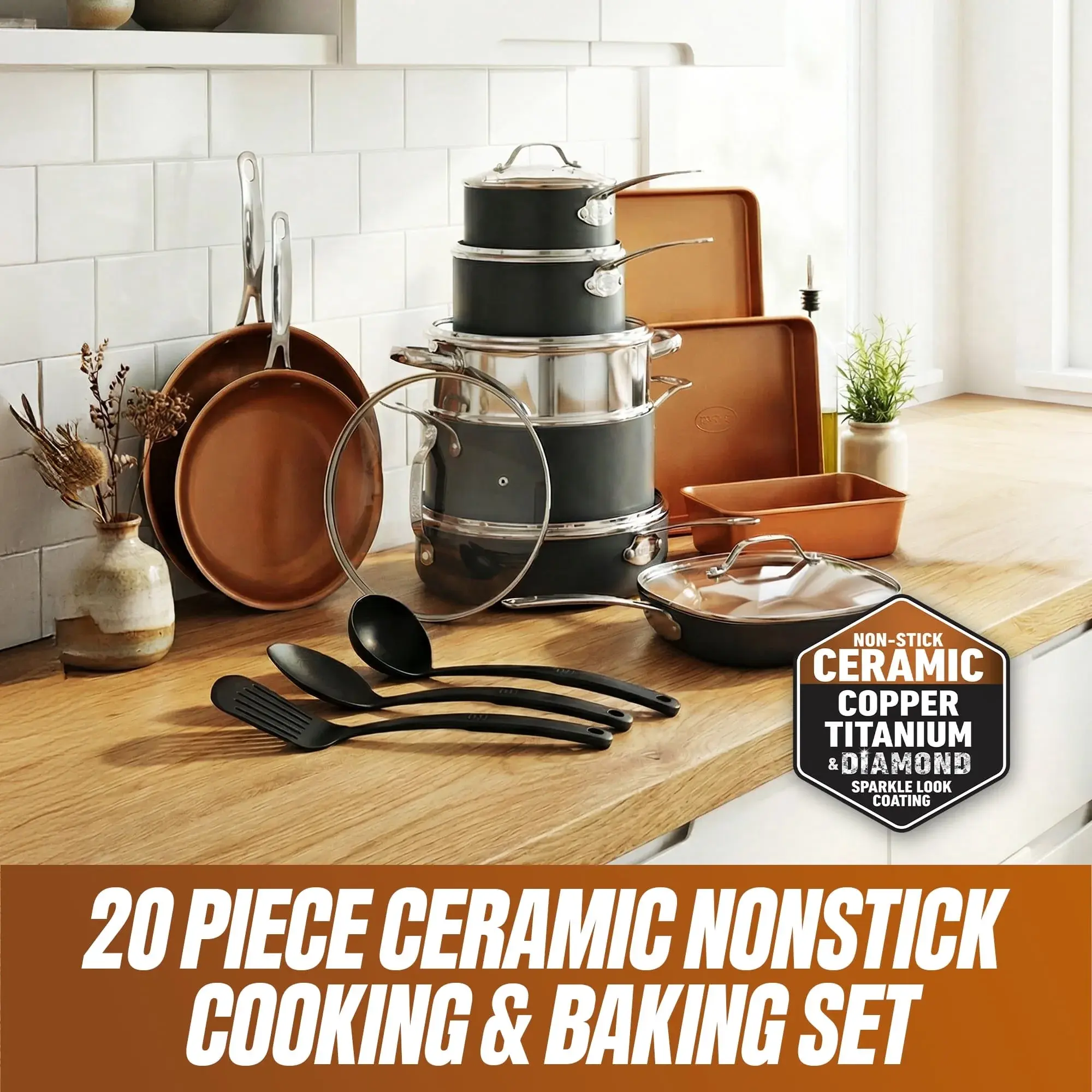 ·COMPLETE KITCHEN COOKWARE SET: Includes 20 essential pieces to fully equip your kitchen for cooking, baking, and serving - all in one complete, nonstick set.