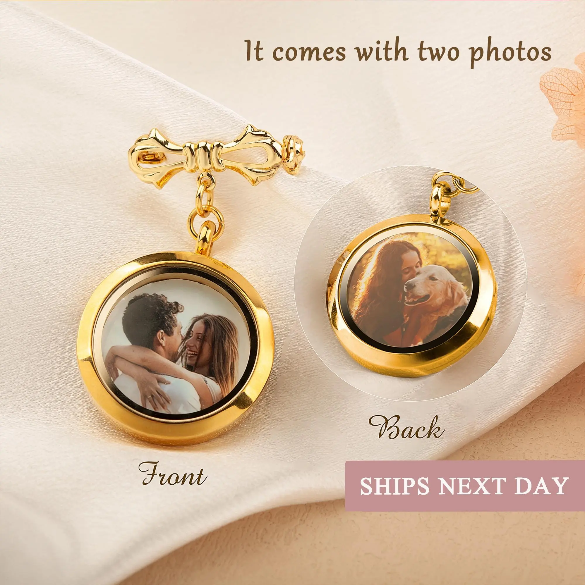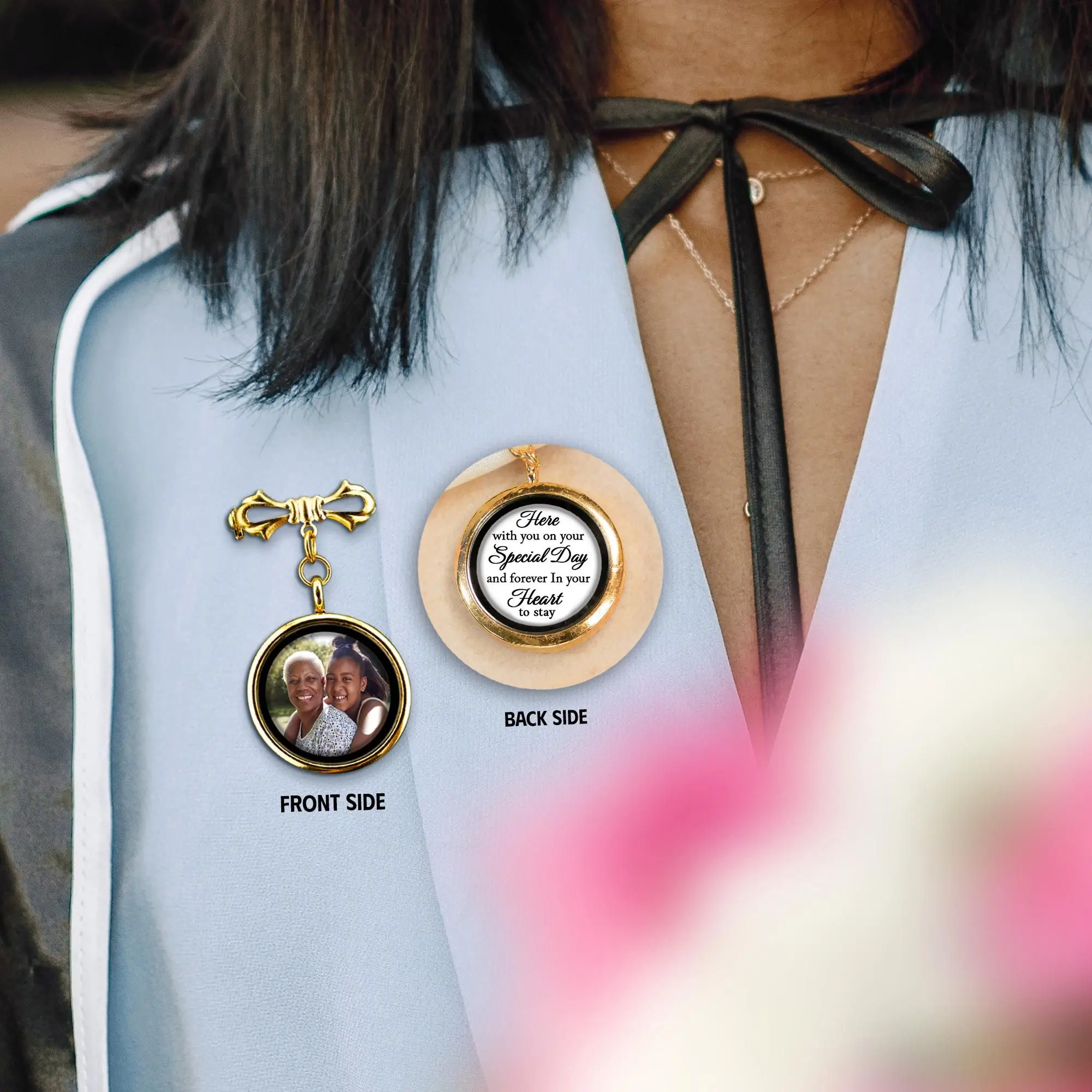 Keep your loved ones close on your special day with this personalized photo pin — a meaningful keepsake full of love and memories.