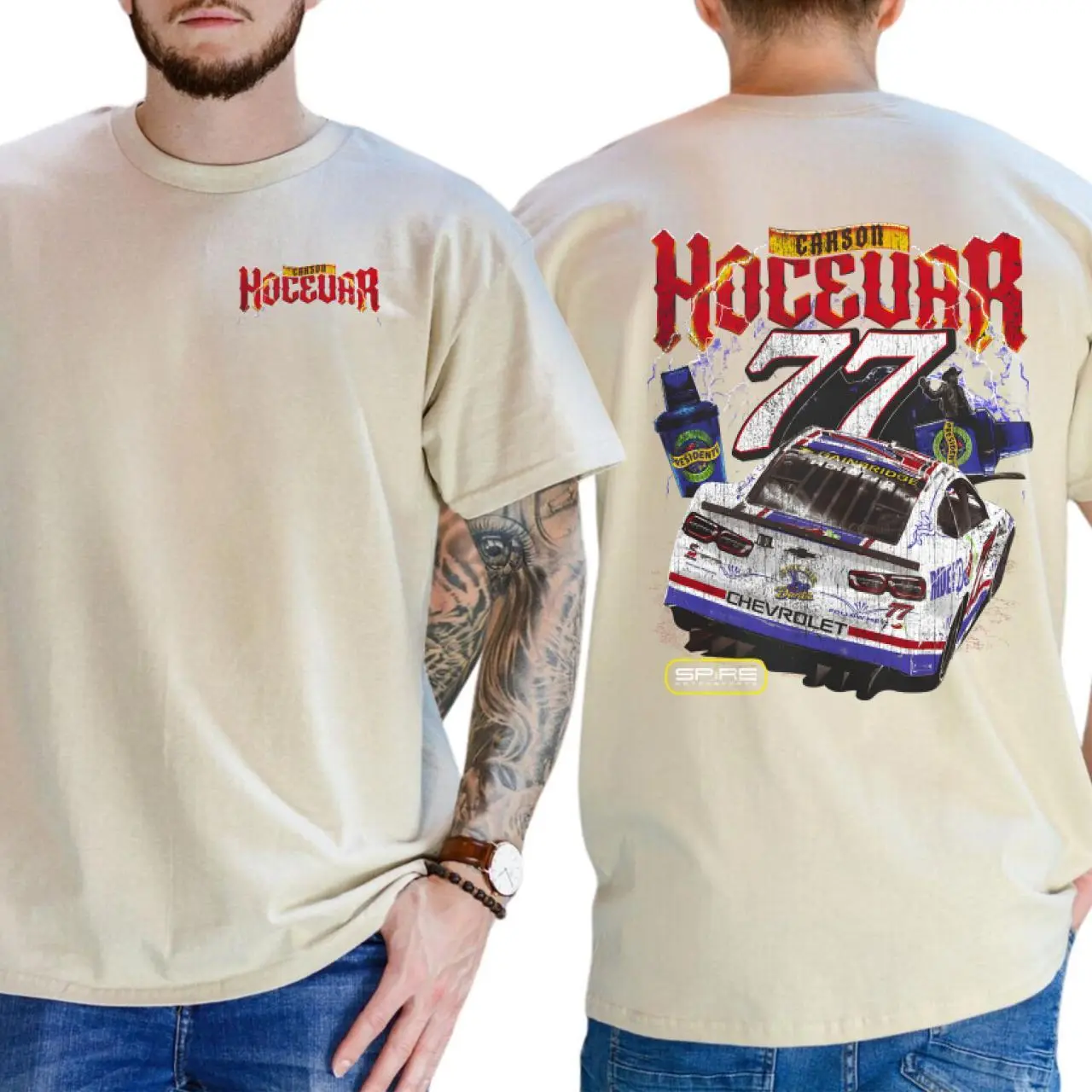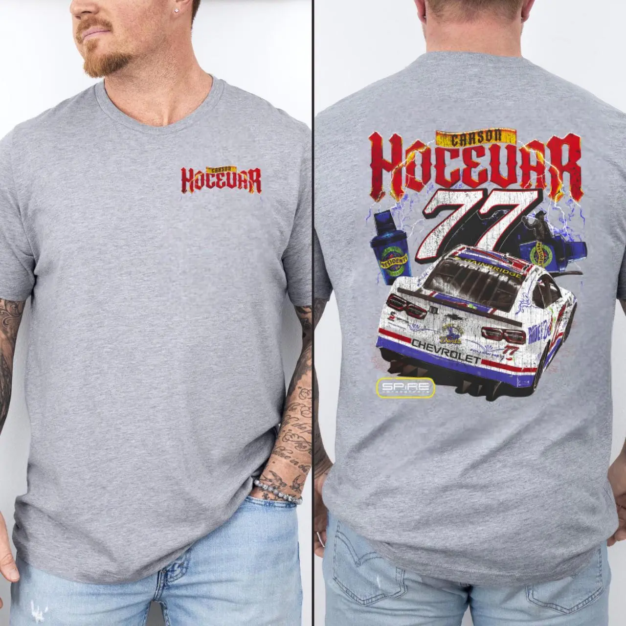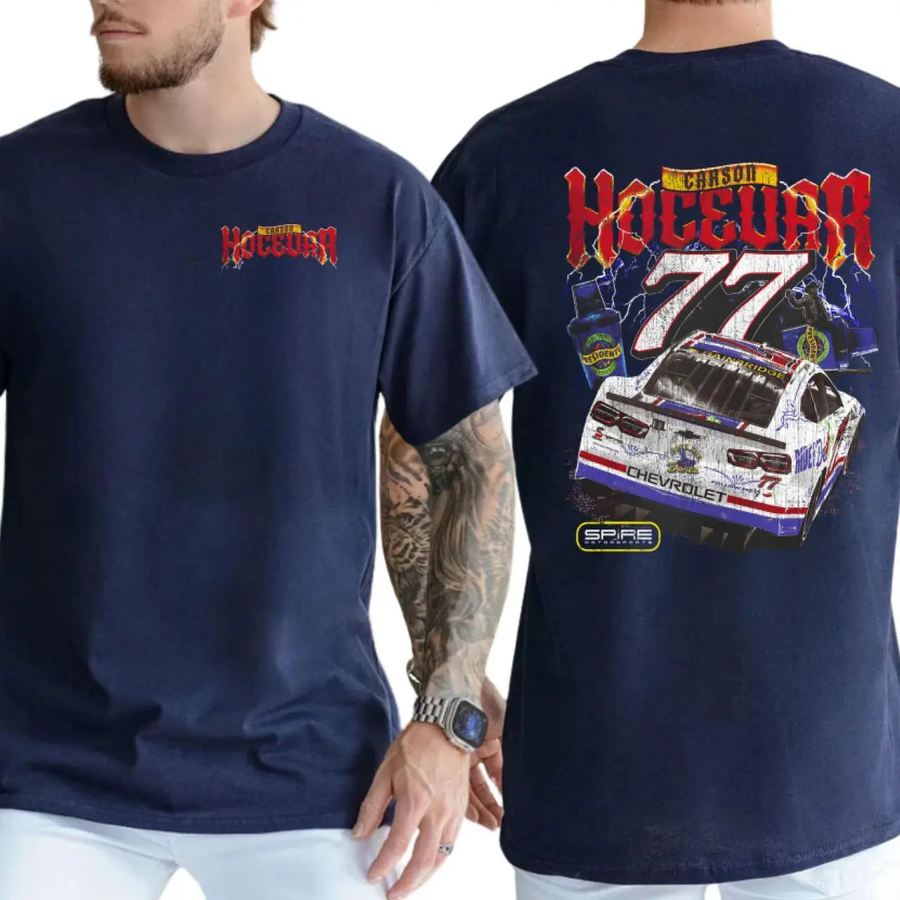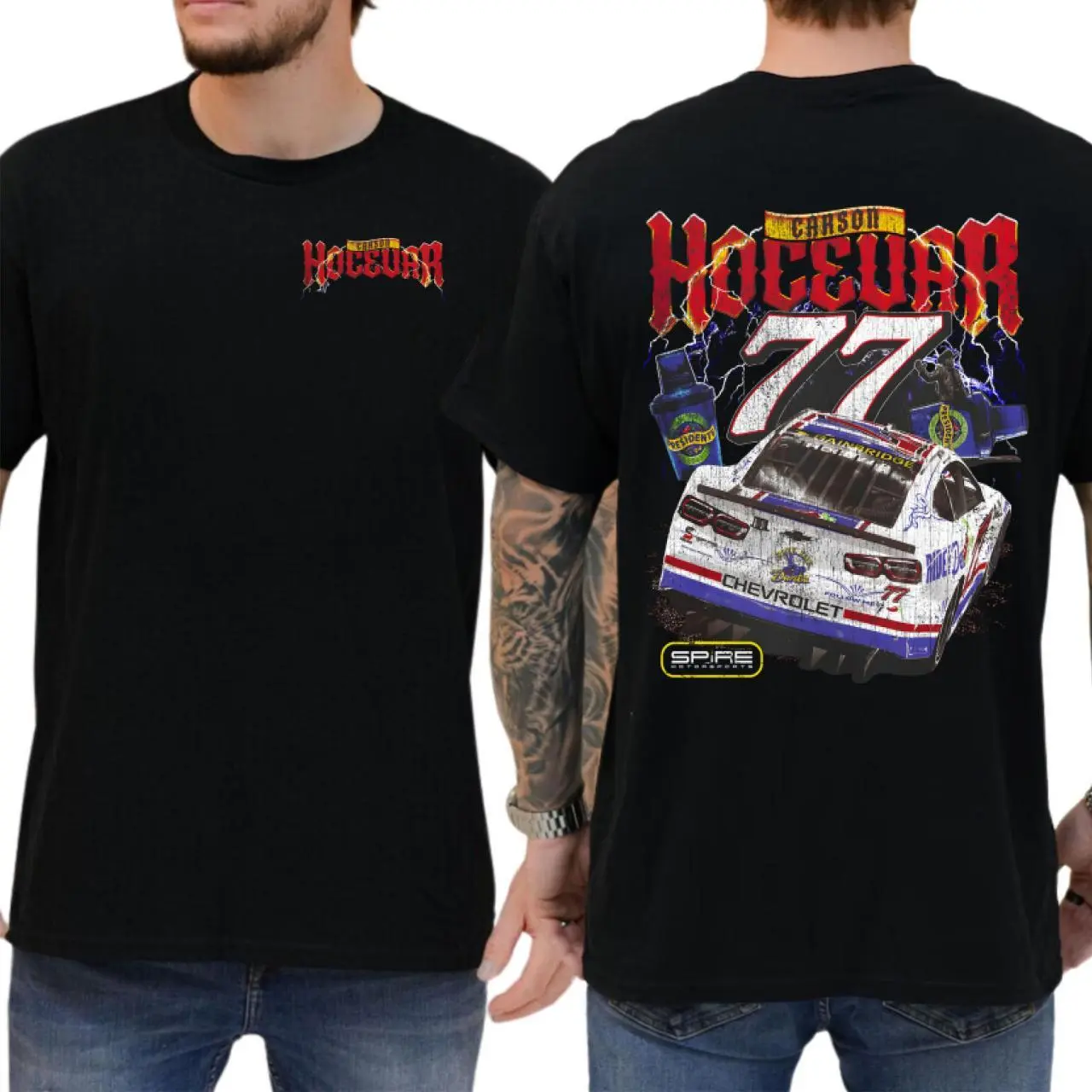 Headline: ️ Taco 'Bout Speed! Feel the Heat with Carson Hocevar. When the #77 Chili’s car hits the asphalt, you know things are about to get spicy. Our Carson Hocevar E2 Apparel T-Shirt captures the bold, high-energy aesthetic of one of NASCAR’s most exciting young drivers. Featuring the iconic Chili's Grill & Bar branding and Hocevar’s signature racing style, this black graphic tee is a "Full Send" for your wardrobe.