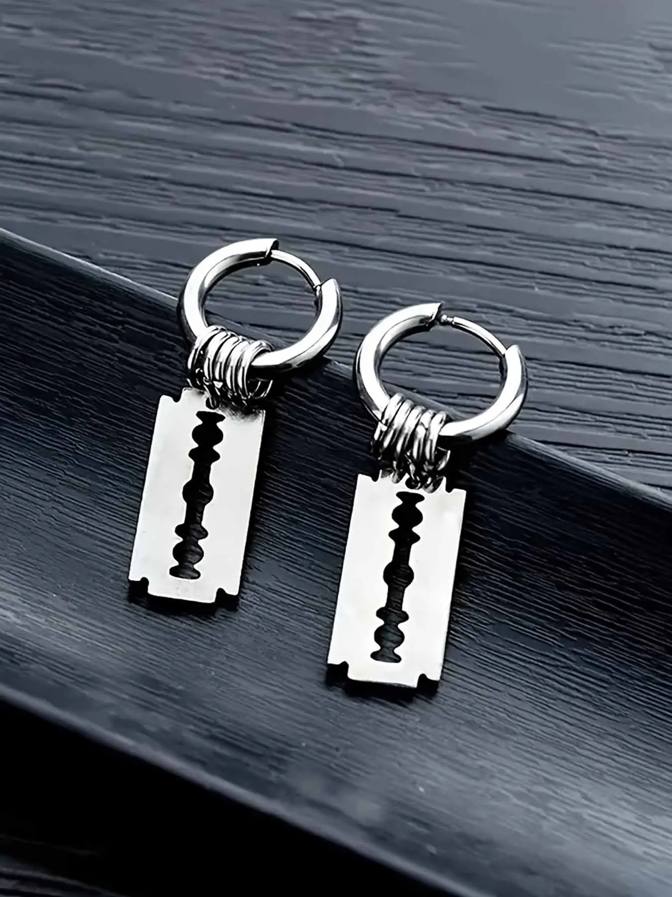 Stainless Steel Punk Hip Hop Blade Pendant Earrings Set, Trendy Couple Matching Accessories, Essential Fashion Jewelry for Stylish People