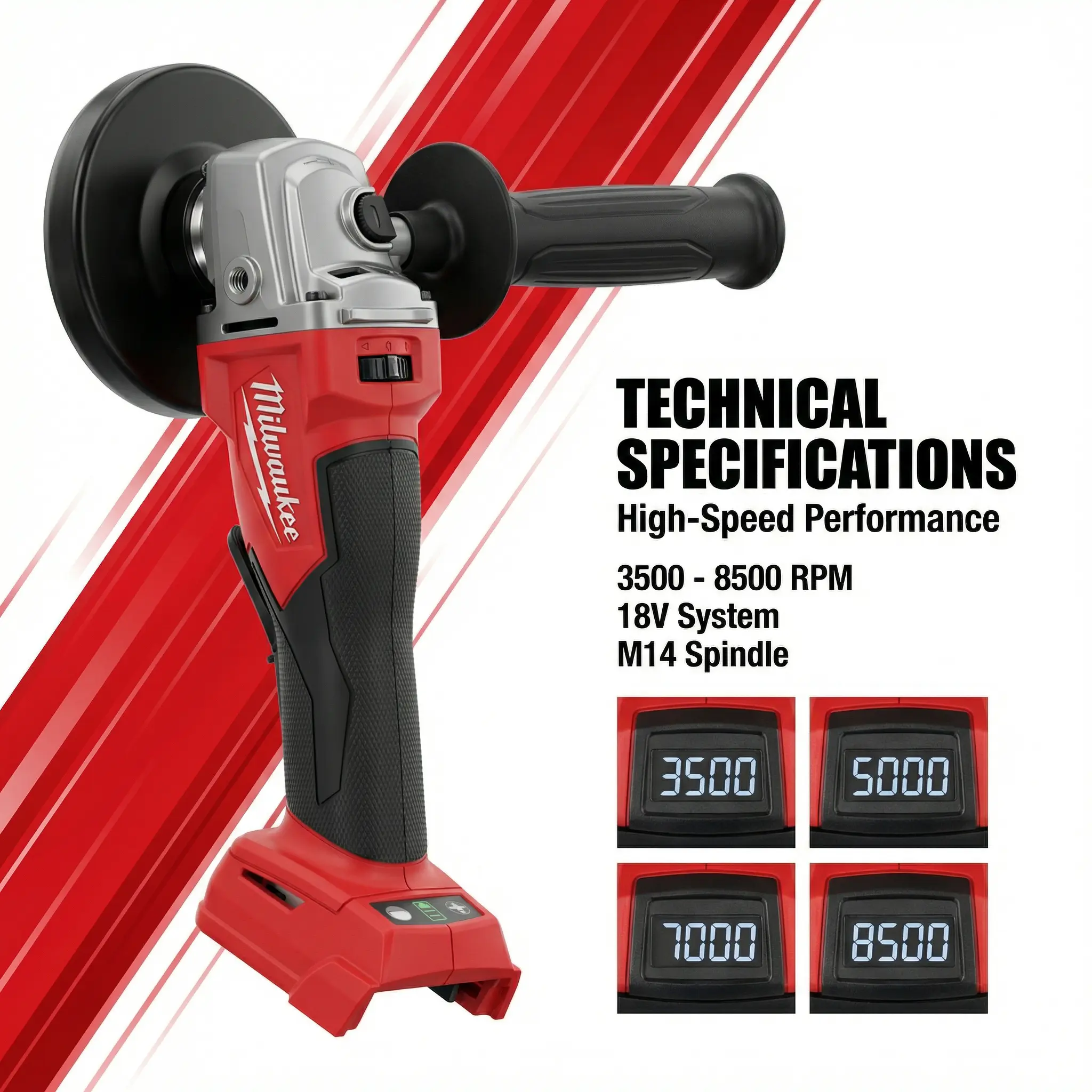 Milwaukee 18V Brushless Angle Grinder 125mm For Metal Cutting And Fabrication With Variable Speed Control And Paddle Switch