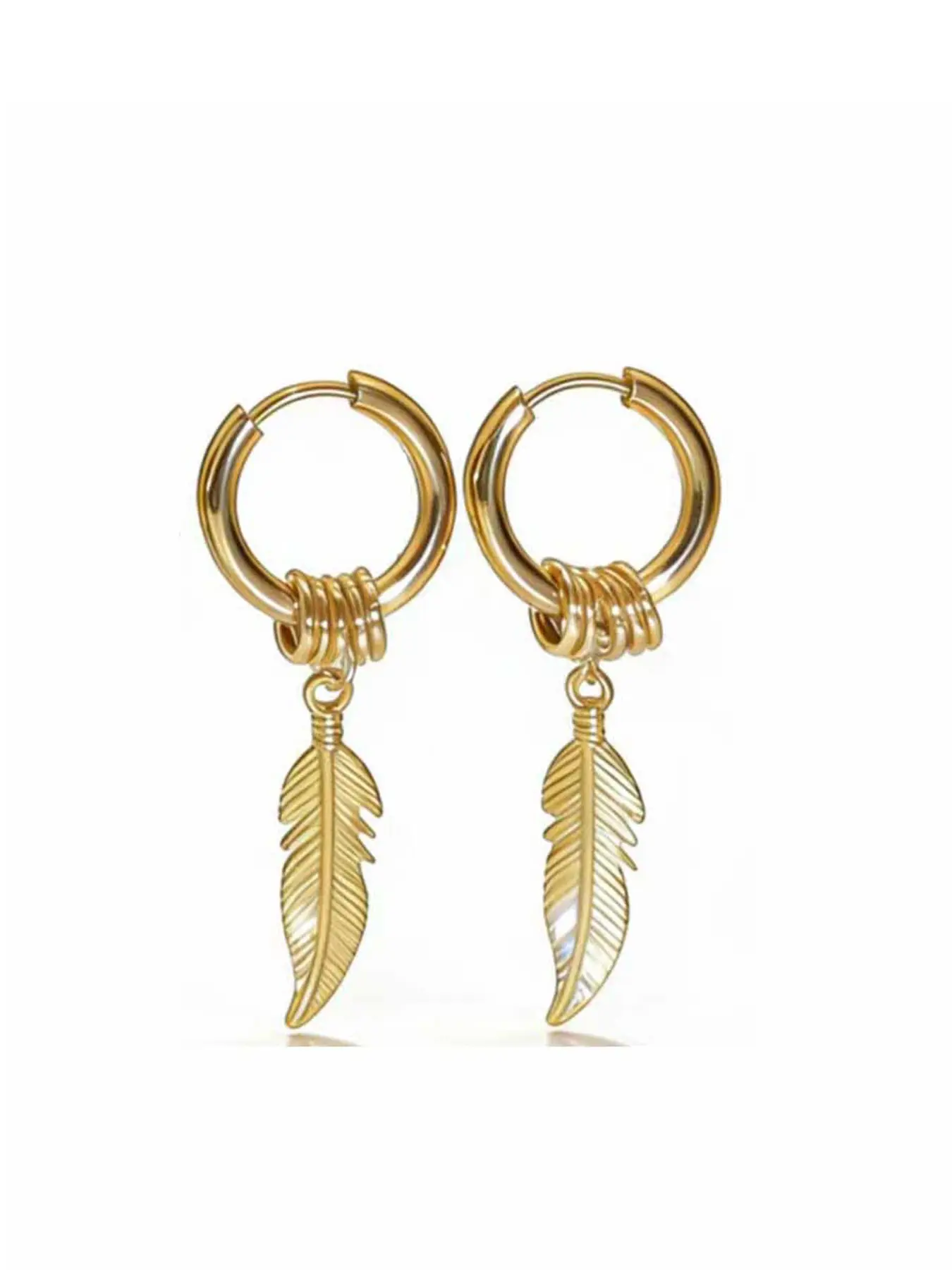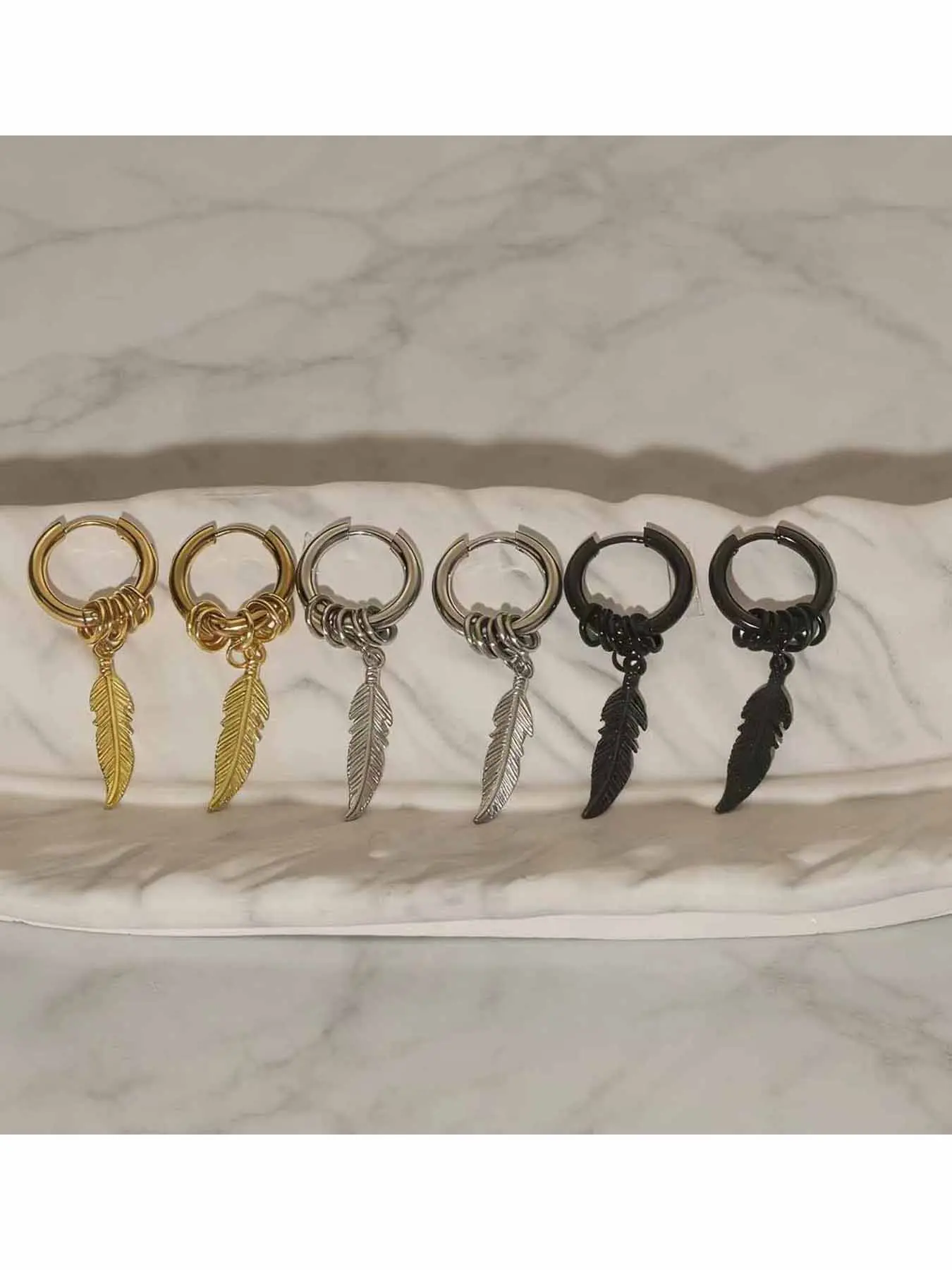 Feather Pendant Coil Earrings, Easy to Wear, Secure Fit, Suitable for Most Ear Shapes, Unisex Design, Durable and Comfortable