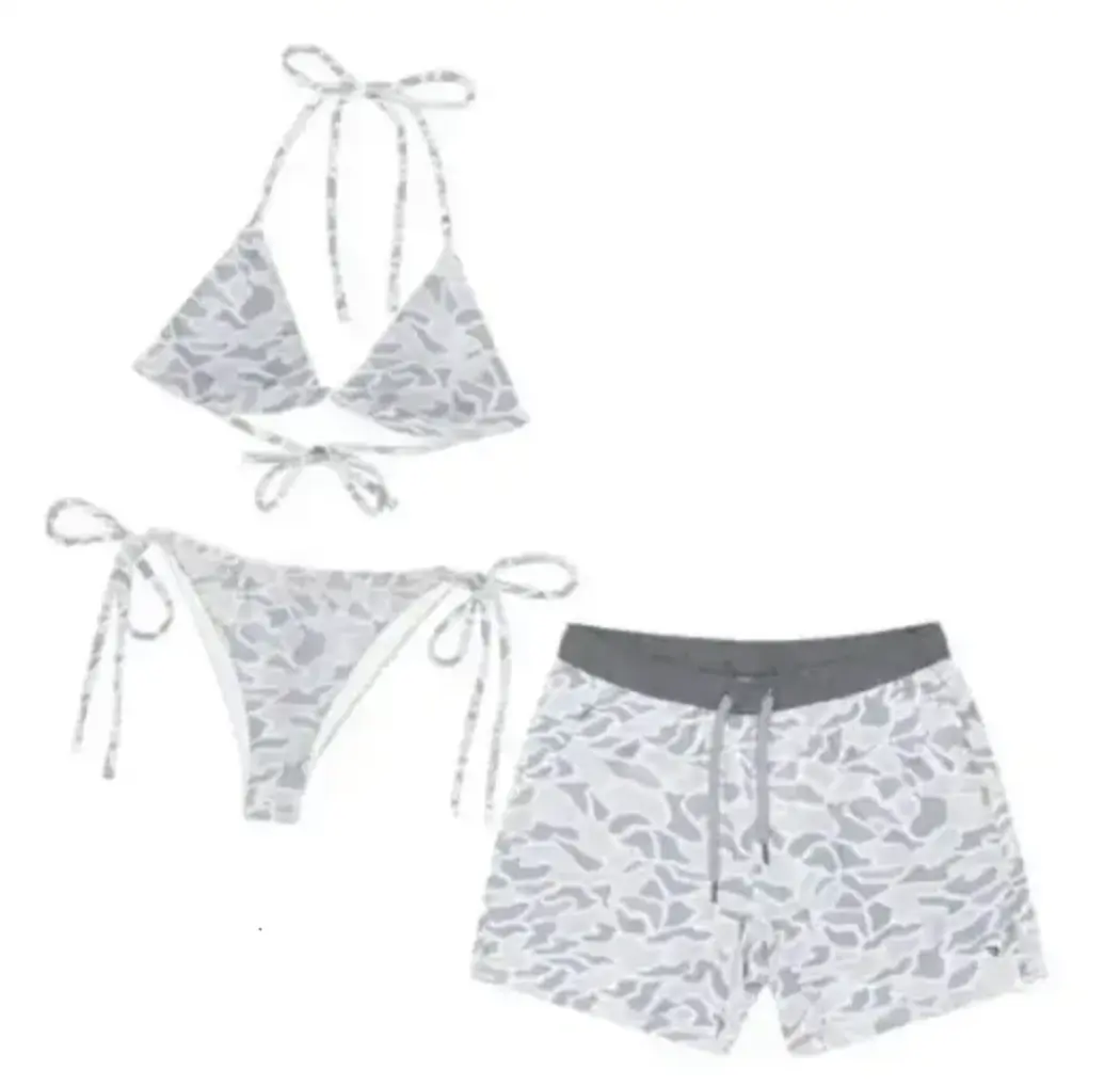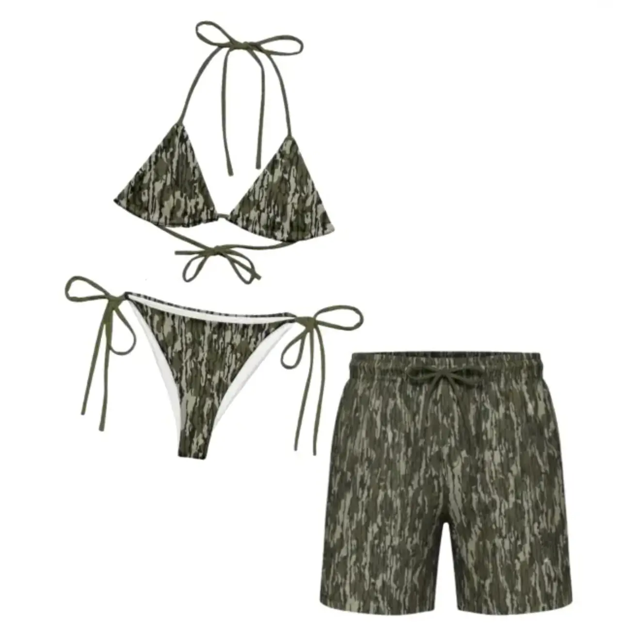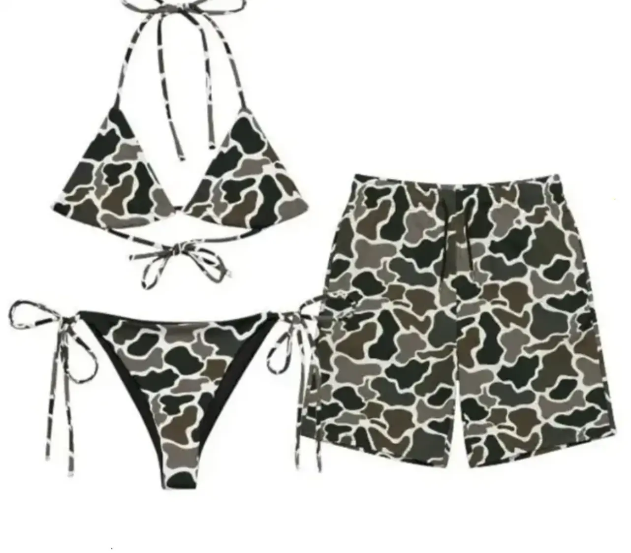 Bundle Camouflage Matching Couple Swimsuit Set, Women's Bikini Sets Two Piece Swimsuit with Mesh Short, Camo Hunting Camo Matching Bikini Sets, Summer Beach Vacation Outfit for Him and Her, Gift for Him and Her