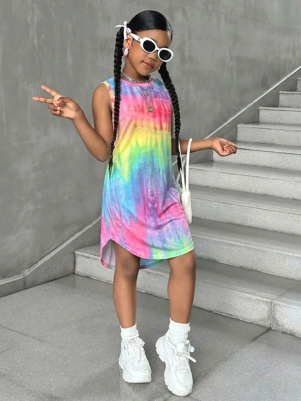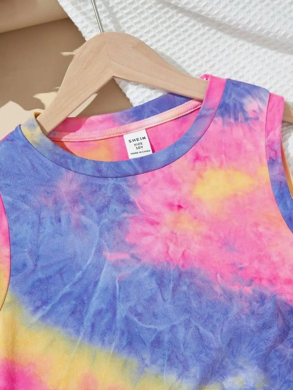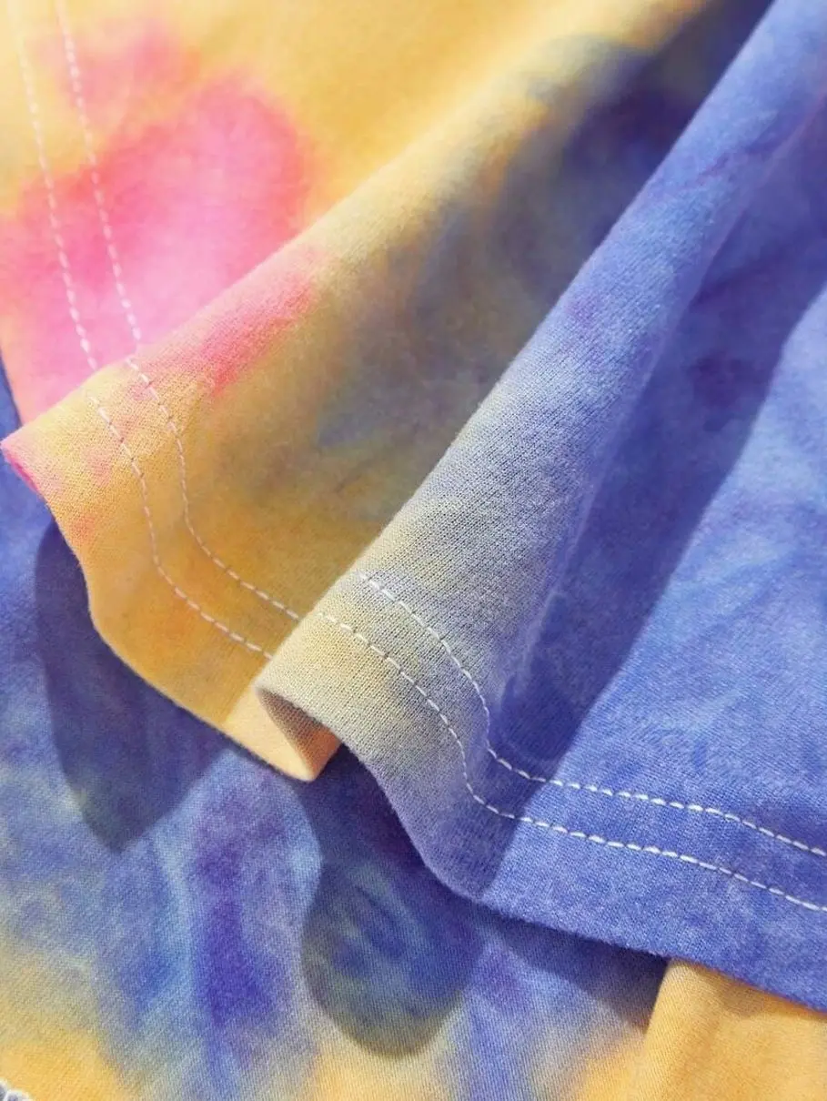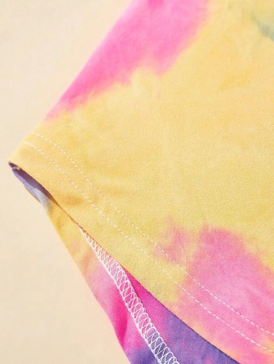 Girl's Casual Streetwear Spring/Summer Sleeveless Knit Tie-Dye Round Neck Dress