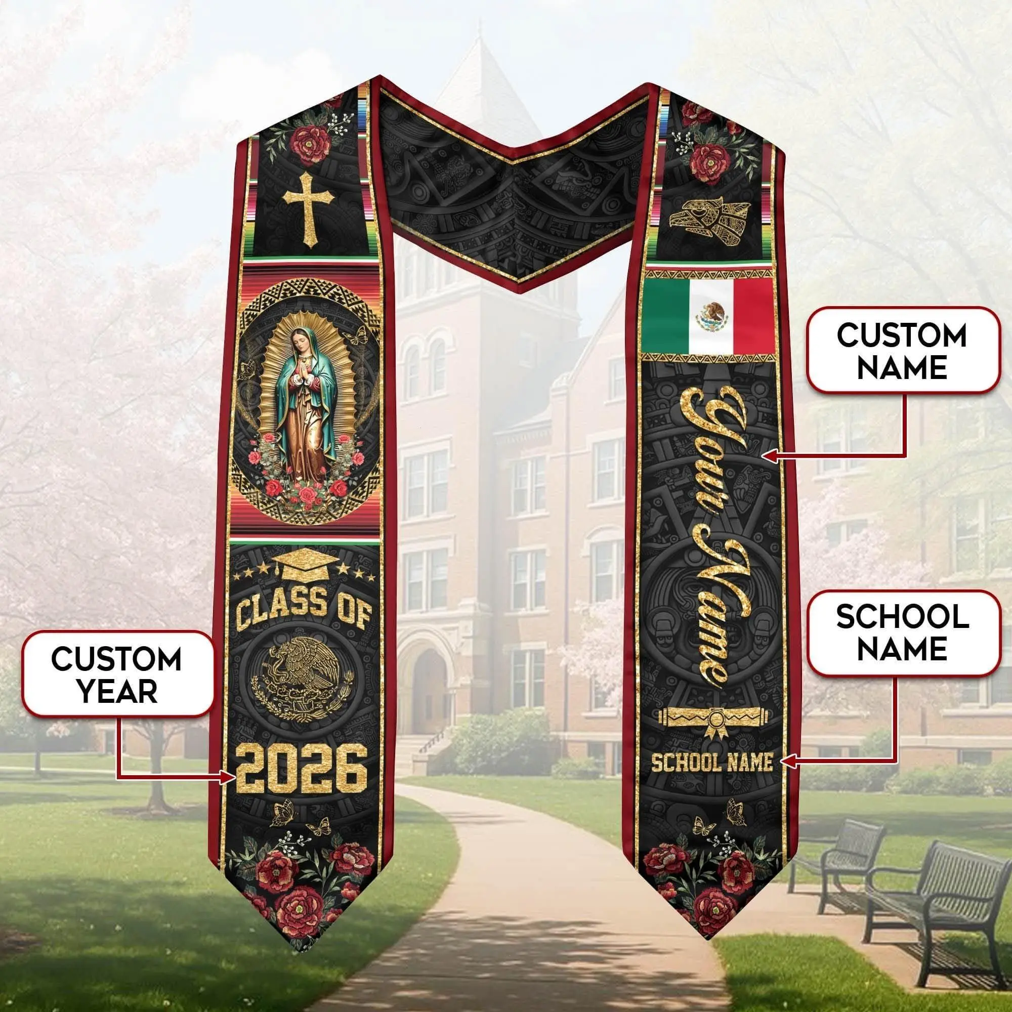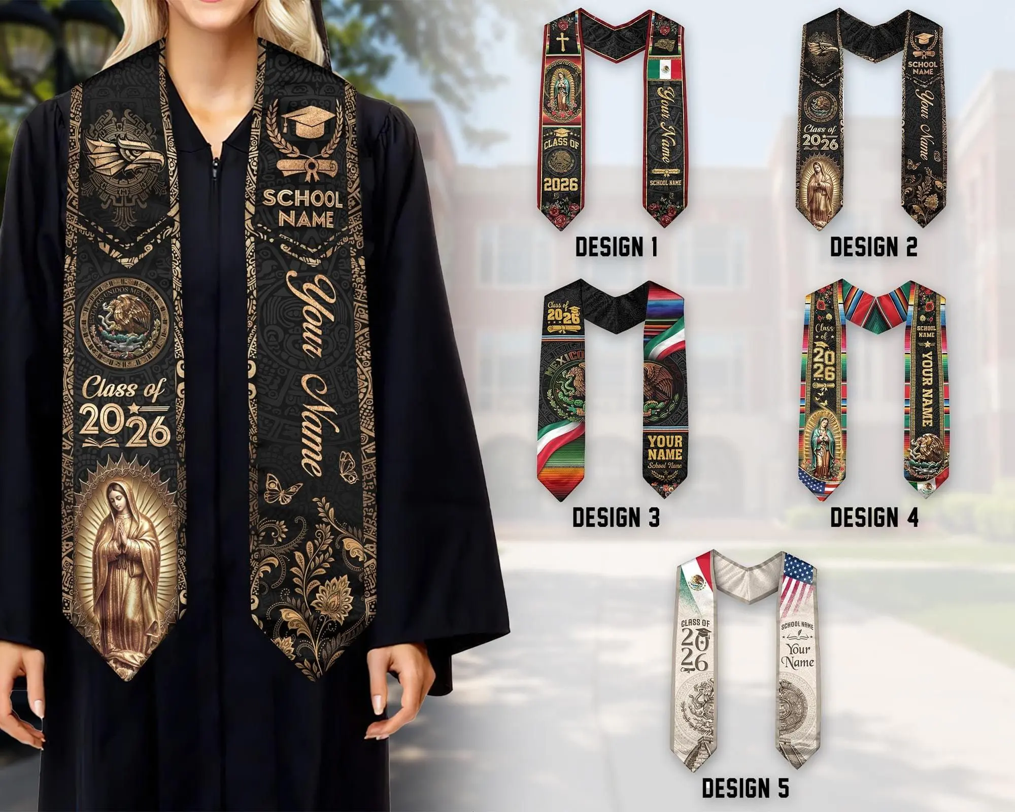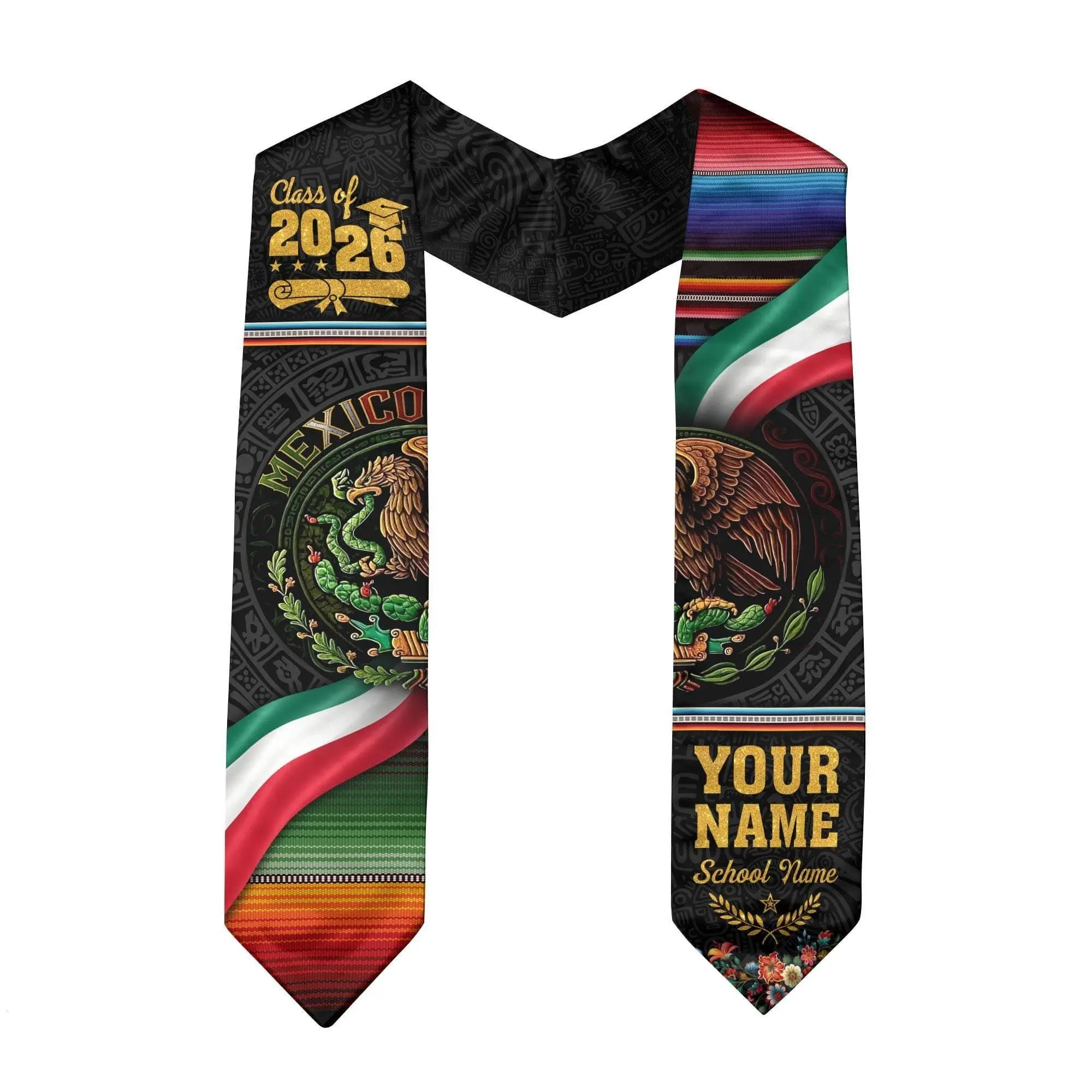 Custom Mexican Graduation Stole, Mexican Flag Graduation Sash 2026, Mexico Pattern Stole, Custom Name & School Sash Senior Graduation Gift