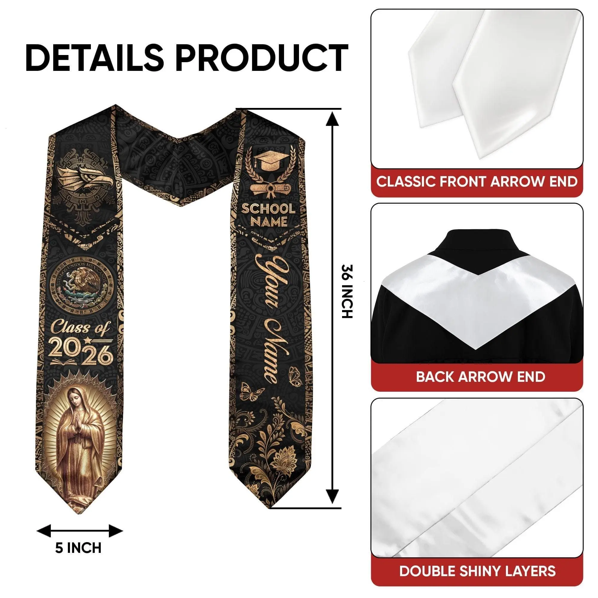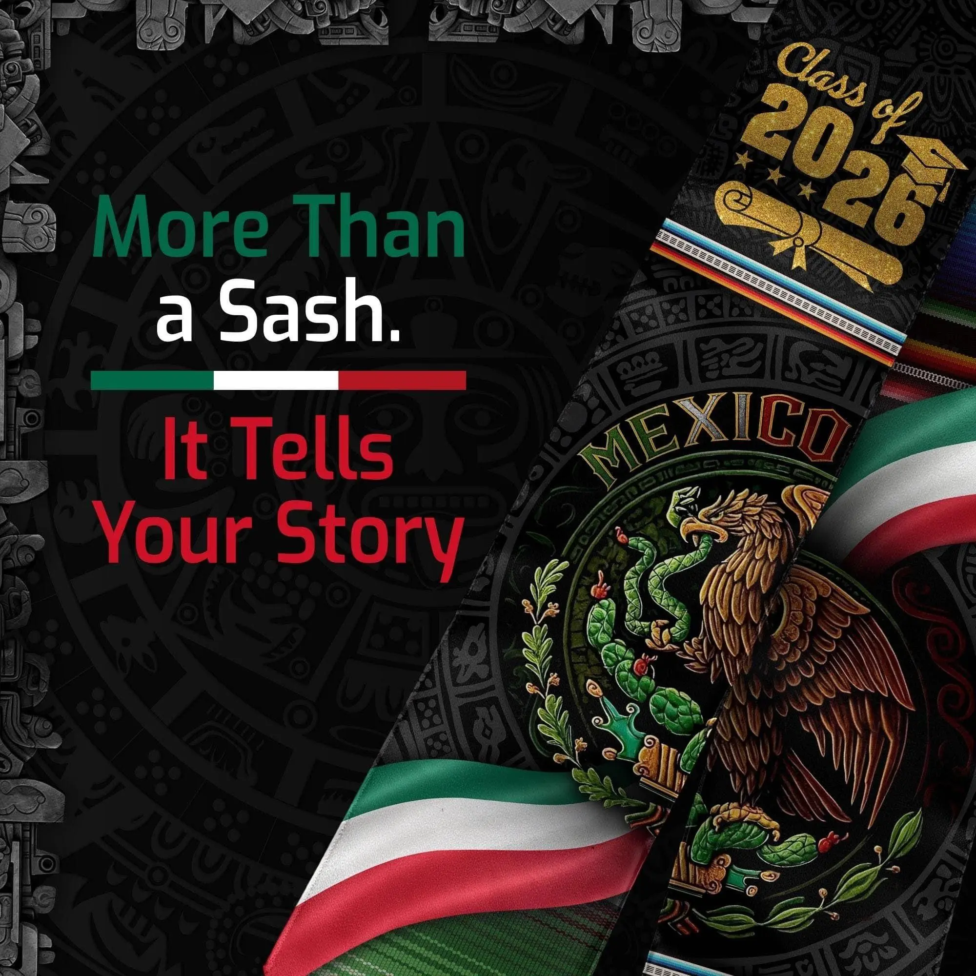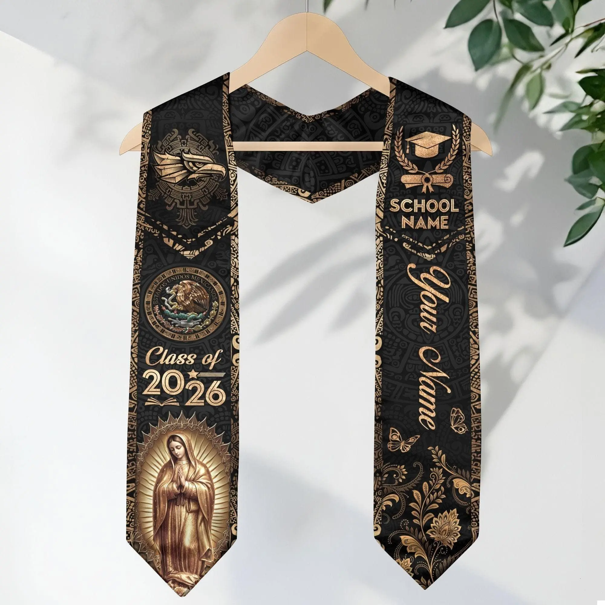 Custom Mexican Graduation Stole, Mexican Flag Graduation Sash 2026, Mexico Pattern Stole, Custom Name & School Sash Senior Graduation Gift