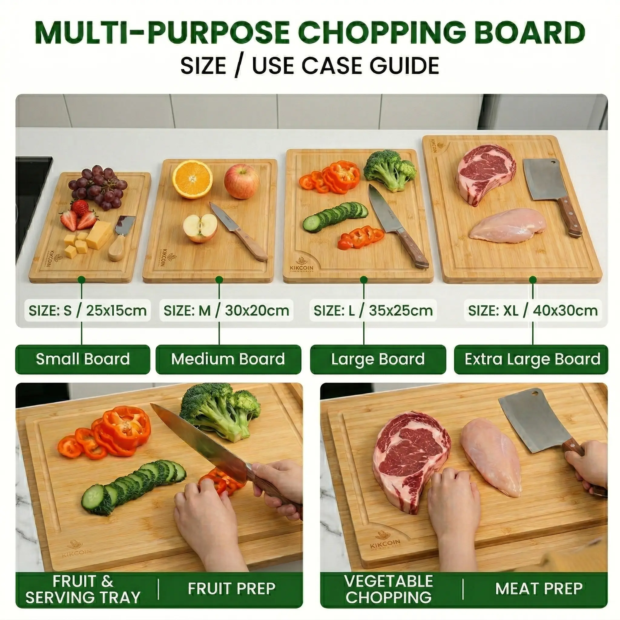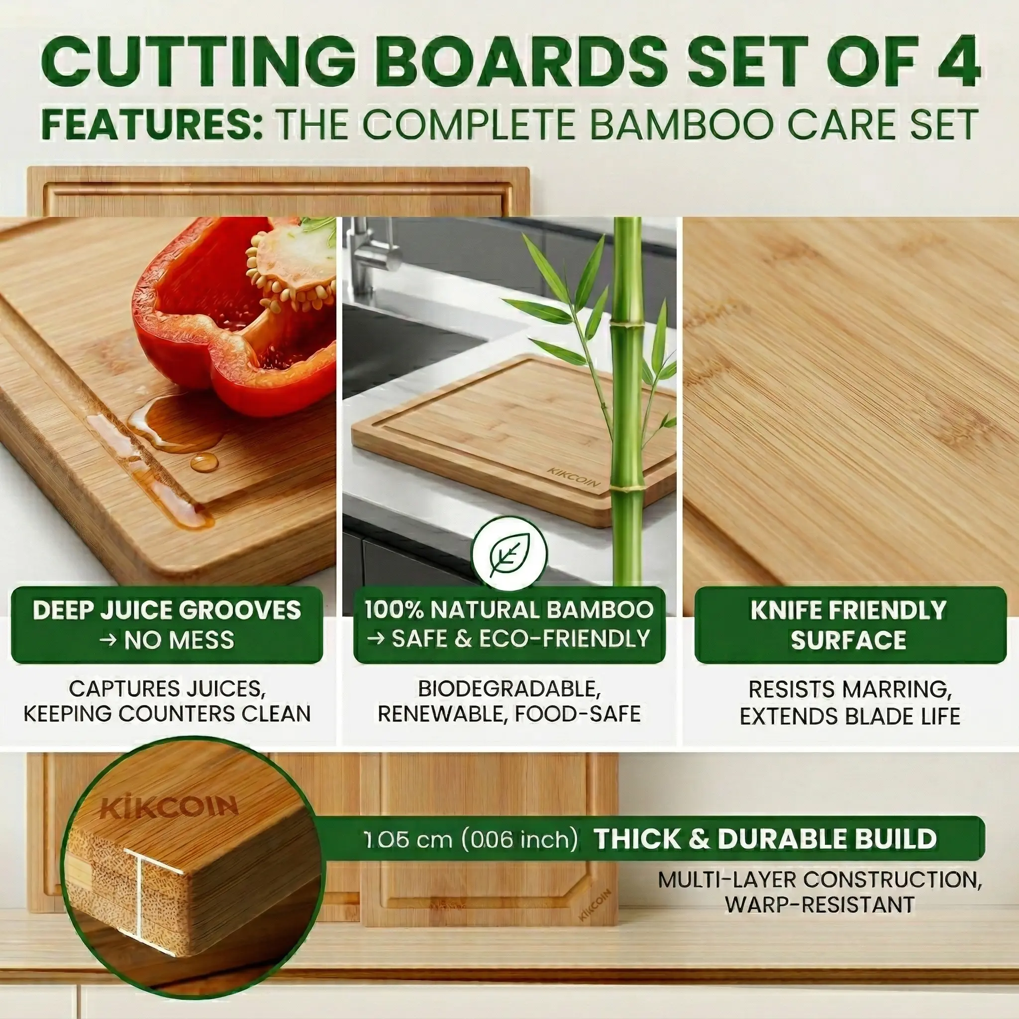 4PCS Extra Large Bamboo Cutting Board Set, Heavy Duty Kitchen Chopping Boards with Juice Grooves, Multi-Size Boards for Meat, Vegetables, Fruits & Cheese, Natural Bamboo Kitchen Essentials