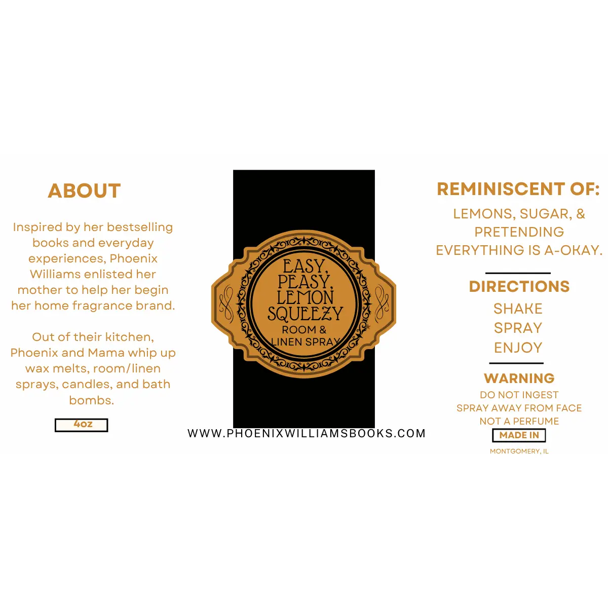 Easy, Peasy, Lemon Squeezy is fun and energizing. Notes of lemon, sugar, and vanilla combine to create an environment that allows you to pretend that everything is a-okay.
