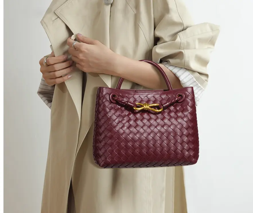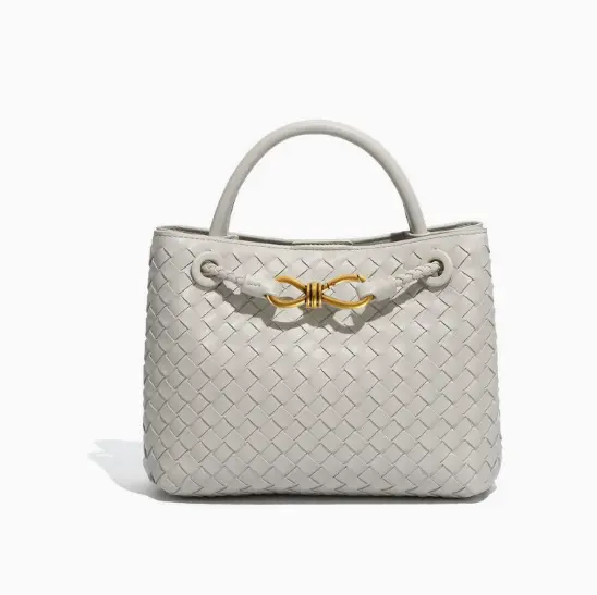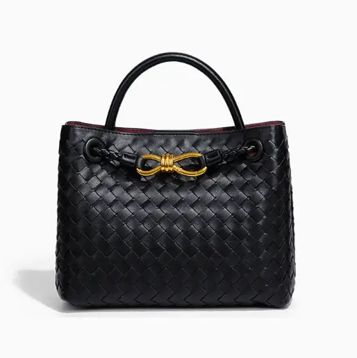 Light luxury woven craftsmanship, premium feel all over: classic handmade woven texture, refined and firm tactile quality, paired with a retro gold button design—subtle luxury that effortlessly creates a French commuter style.