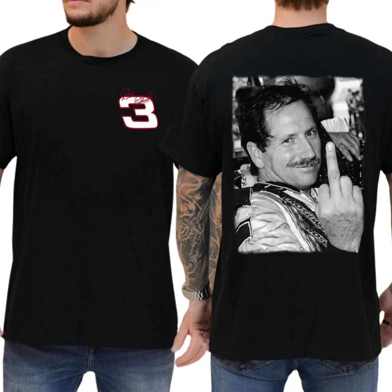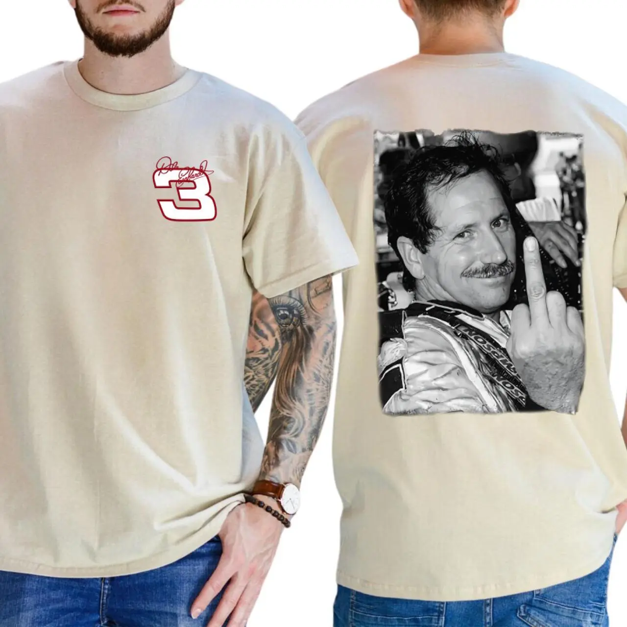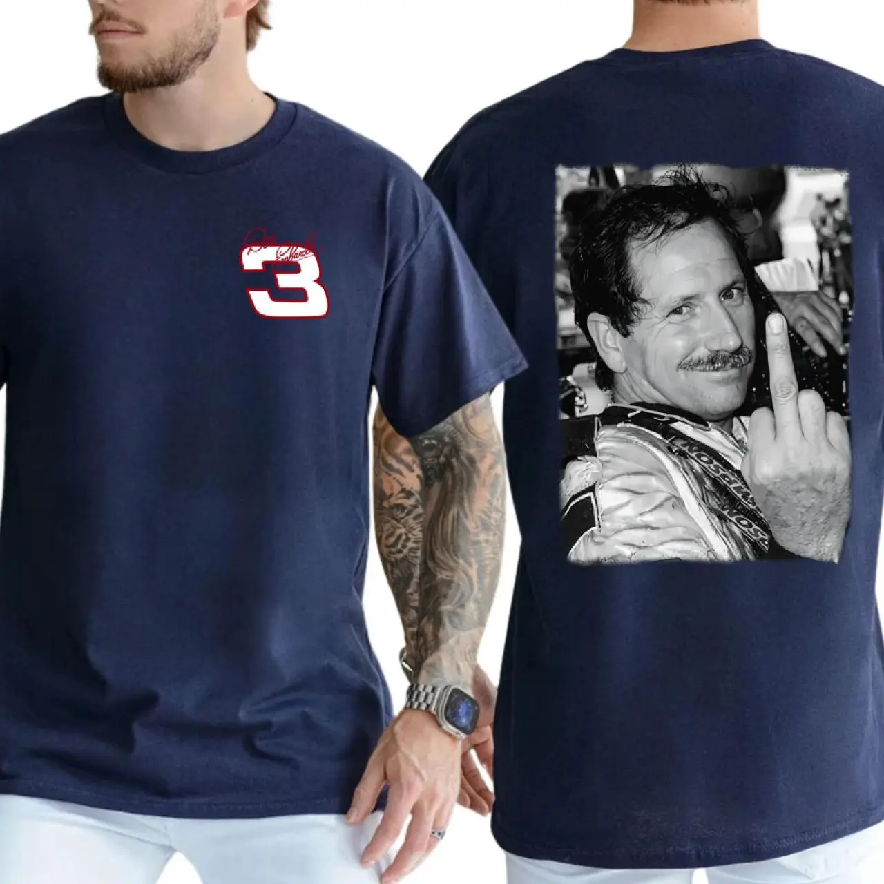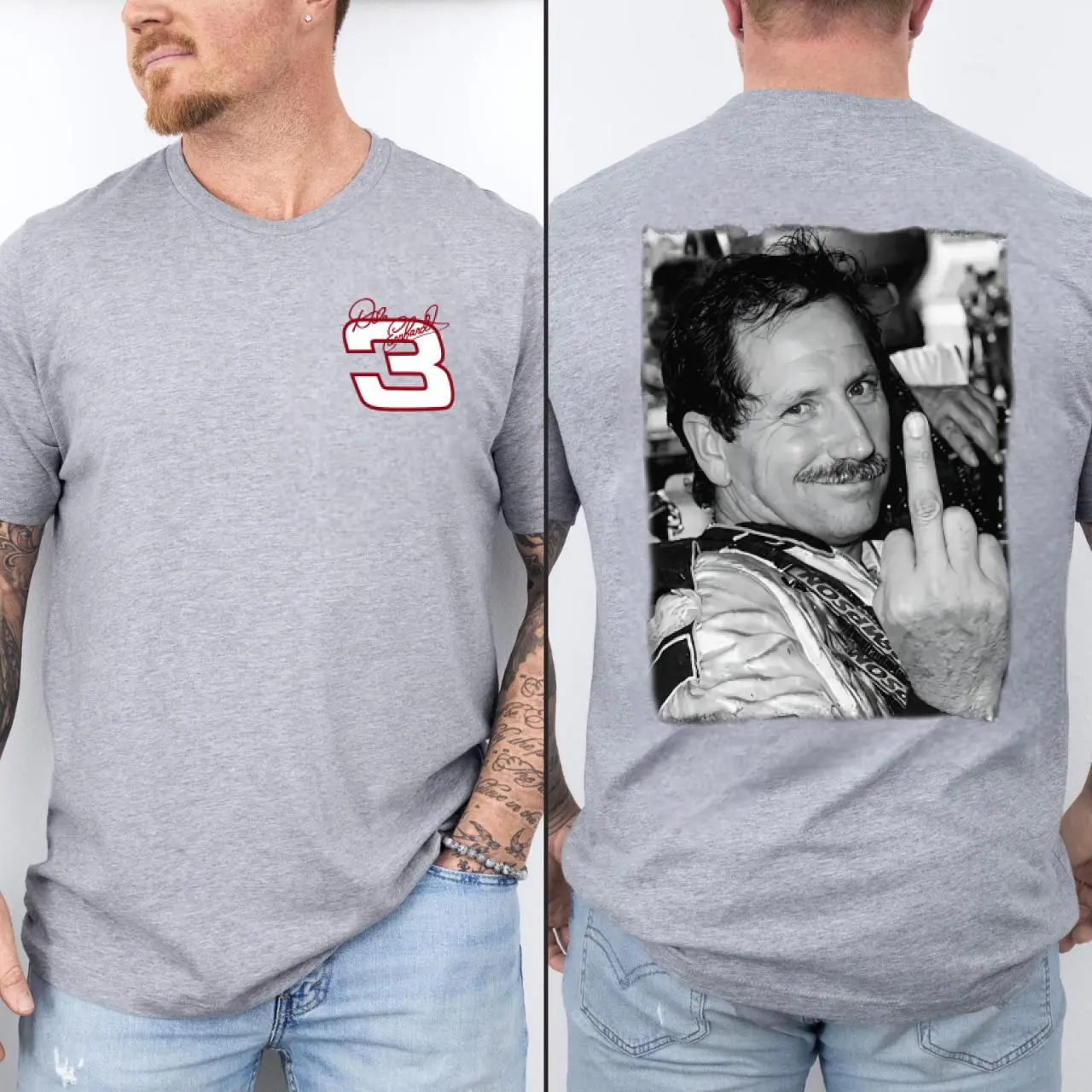 Headline: Give 'em the Bird. Drive Like a Legend. There was only one #3, and he didn't play by the rules. Our Dale Earnhardt Middle Finger T-Shirt captures the raw, unfiltered spirit of "The Intimidator" in a stunning vintage 2-sided design. This isn't just a shirt; it’s a tribute to the most defiant moment in racing history. If you're looking for that authentic 90s NASCAR vibe, this is it.
