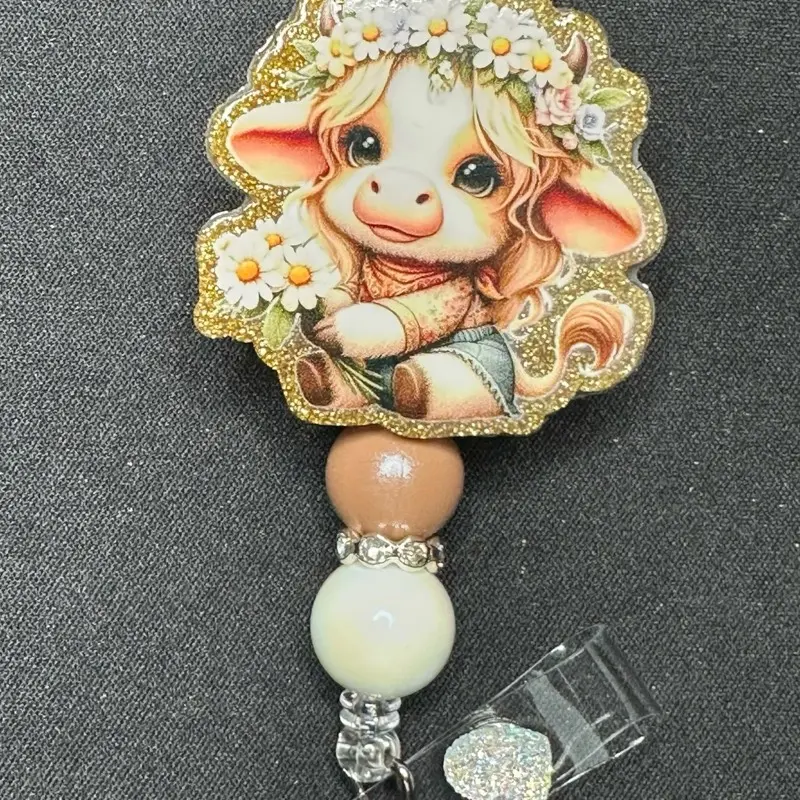 This listing is a badges reel design come with alligator clip acrylic and silicone beads.