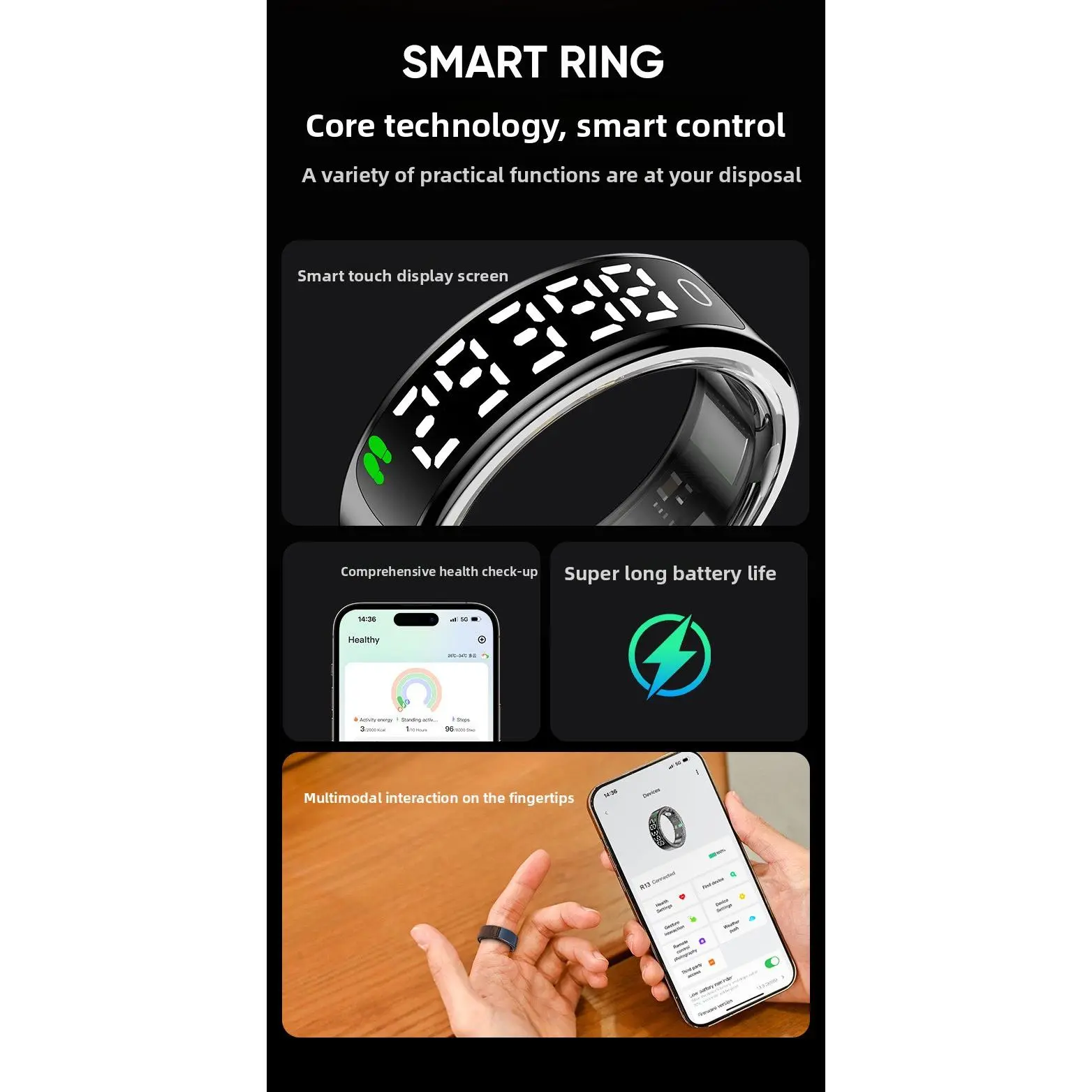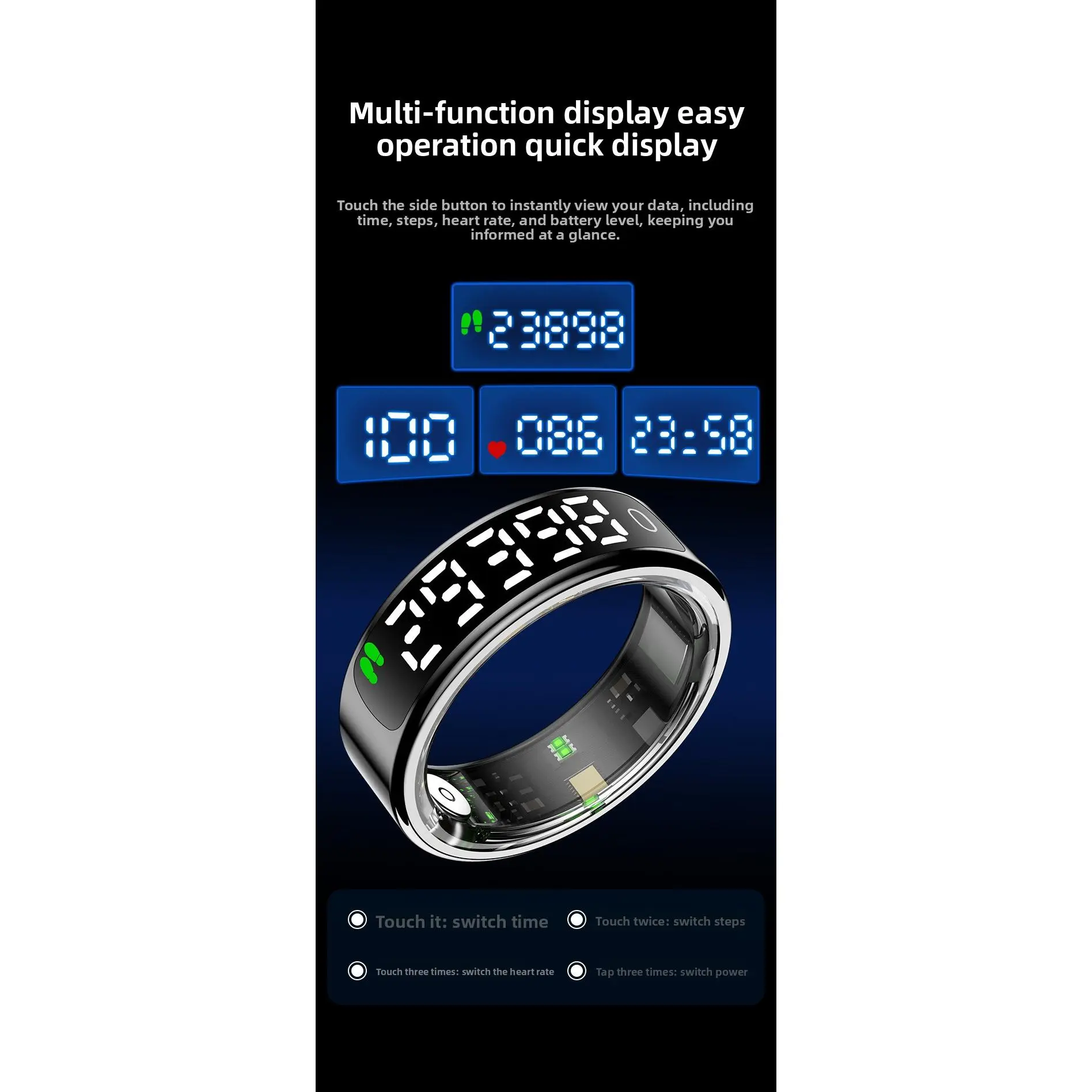 R13 Smart Ring Blood Oxygen Monitor Step Counter Sleep Tracker Bluetooth Fitness Activity Tracker for Health Monitoring Sports Exercise Tracking with Display