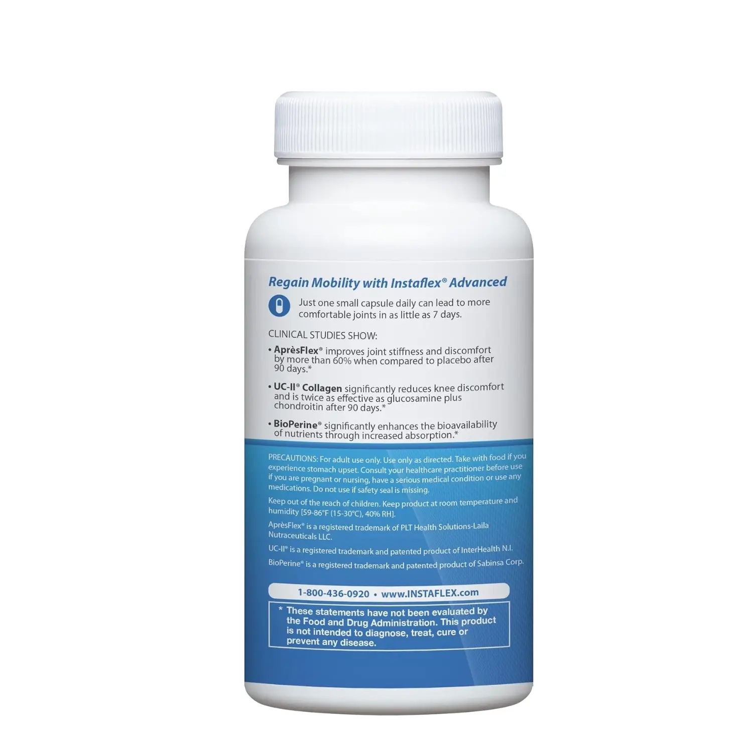 ·Instaflex Advanced is made with potent, ultra-premium ingredients like UC-II Collagen, which is twice as effective as glucosamine plus chondroitin at reducing discomfort during daily activities