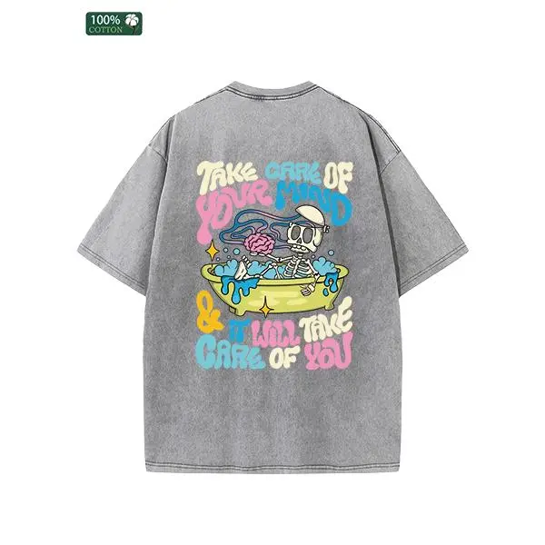 All-Season Men's Clothing, Printed Men's Fashion T-shirts, High-quality Heavy Washed Tee, Round Neck Loose Large Size Men's Short Sleeves Graphic Top.