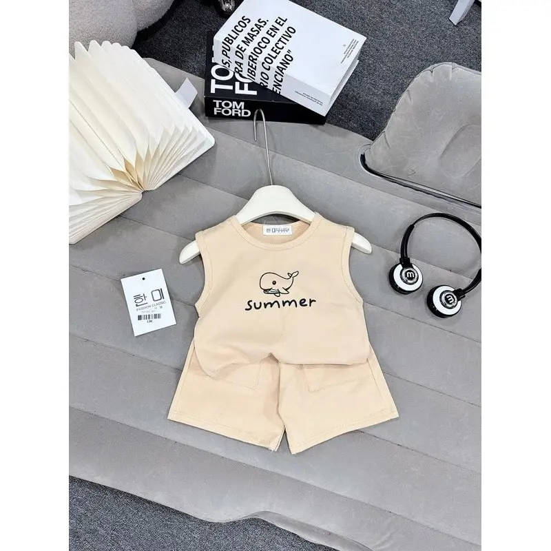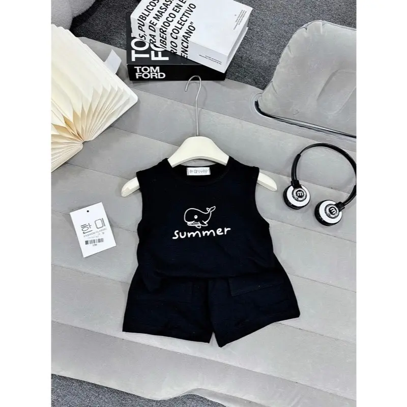 Minimal Dolphin Graphic Sleeveless Outfit Set – Soft Cotton Matching Set, Lightweight Summer Casual Two Piece, Aesthetic Comfy Daily Wear