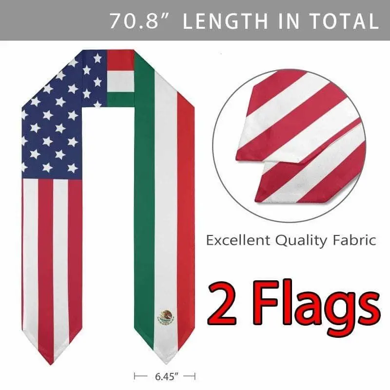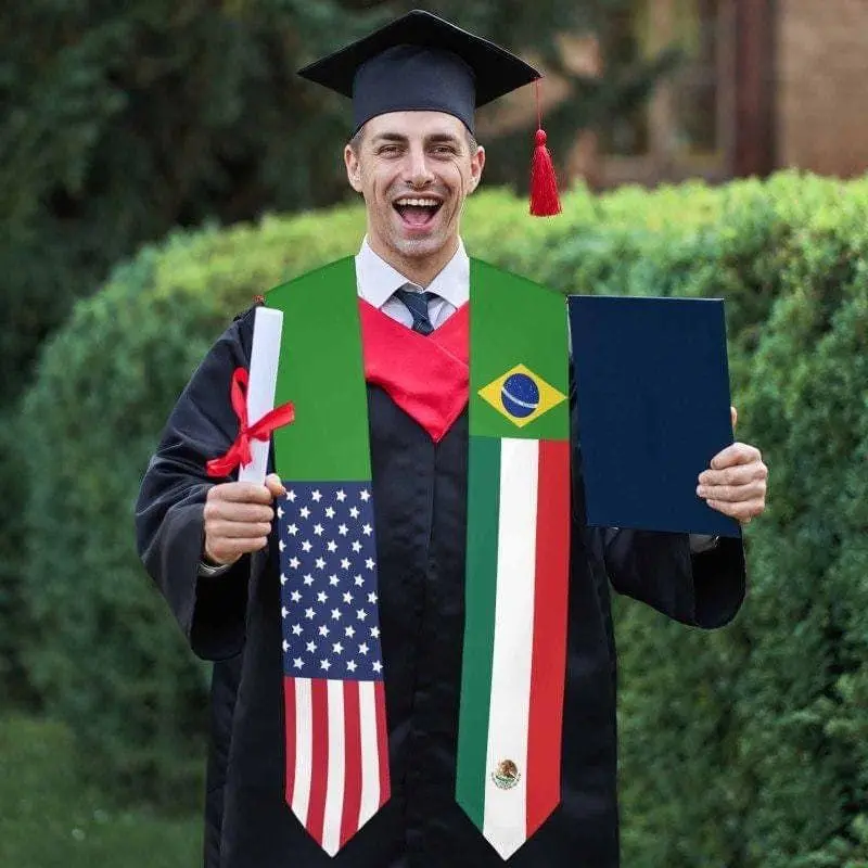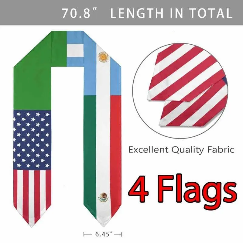 5. Custom Country Flag Graduation Stole, Personalized Class of 2026 Sash