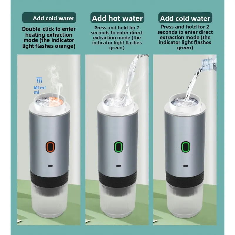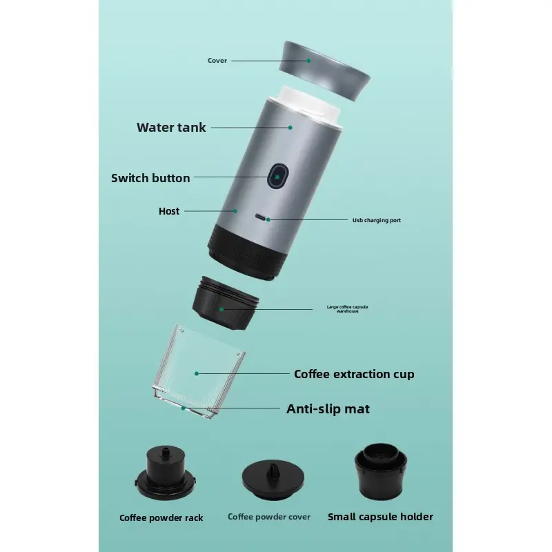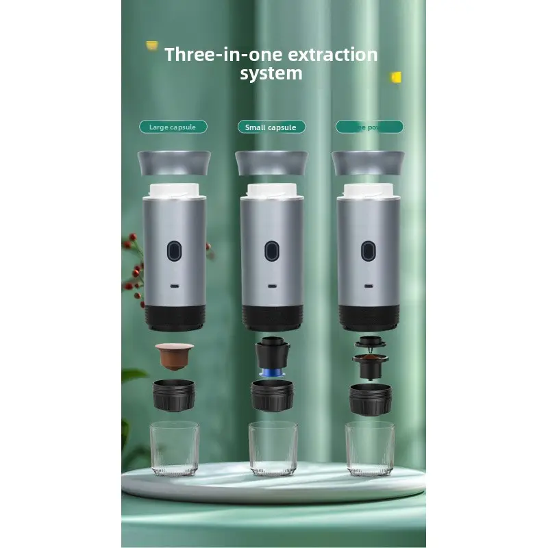 Compact portable heating coffee machine lets you enjoy barista-quality espresso anywhere.3-in-1 universal design works with coffee powder, large capsules and small capsules.Fast heating for rich, aromatic espresso with minimal operation.Lightweight and easy to carry, perfect for home, office, travel and outdoor use.