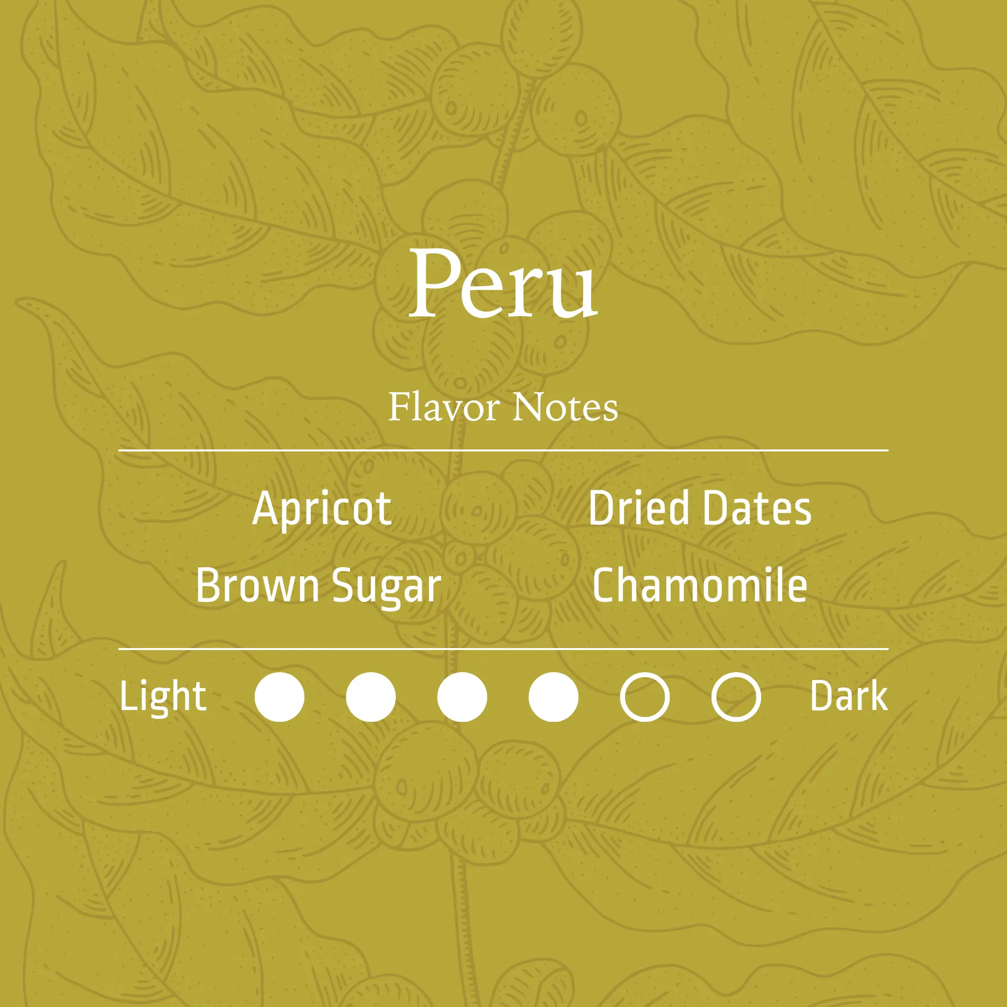 A vibrant Peruvian coffee layered with stone fruit sweetness, delicate florals, and refreshing citrus lift.