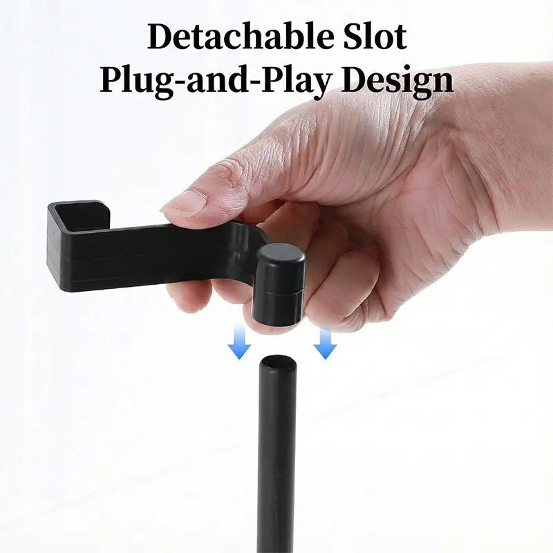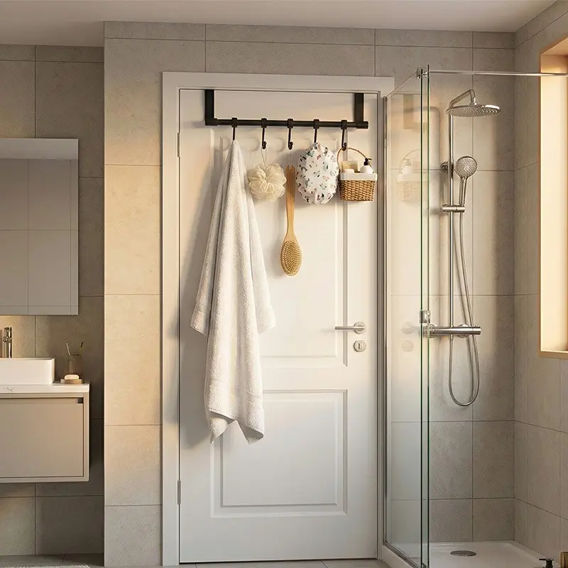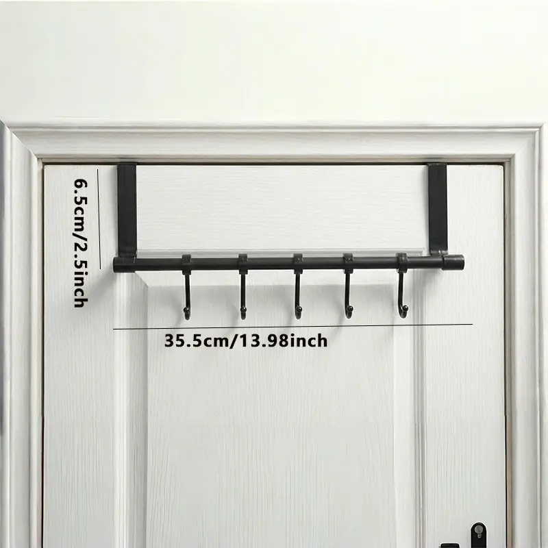 5. Door Hook Holder, Kitchen Cabinet Door Rod with Auxiliary Hooks, Detachable No-Drill Installation, Design for Entryway, Hallway, Bathroom, Kitchen