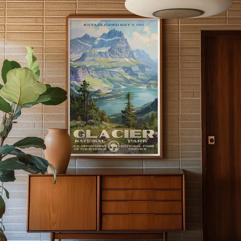 5. Glacier National Park Poster, Montana Travel Print, Home Decor, Wall Art Painting, Hiking Gift