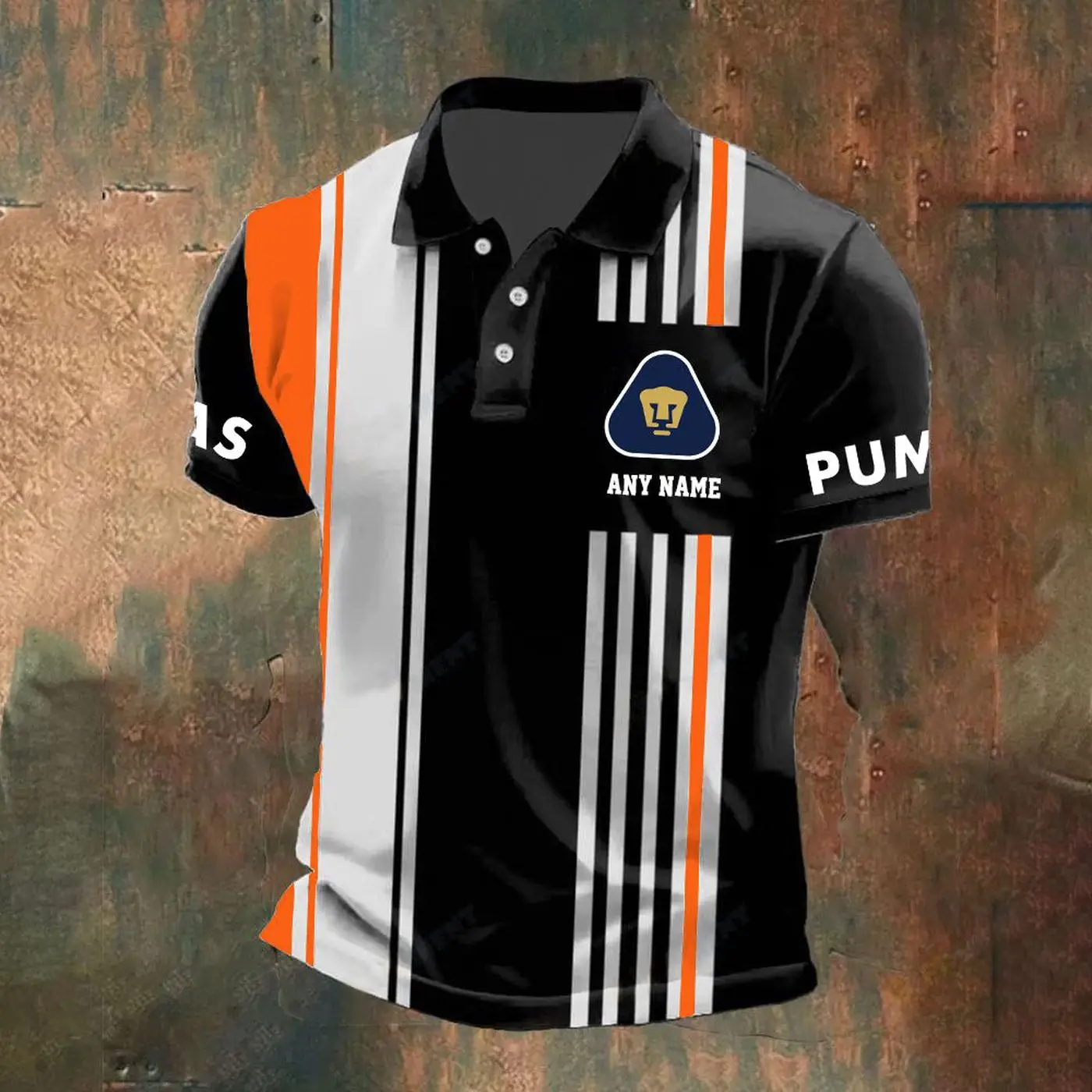Stand out from the crowd with the LIGA MX Pumas UNAM Personalized Name Stripped Polo Design ST2502. Made with high-quality materials, this polo features a unique design that can be personalized with your name. Show your support for your favorite team in style!
