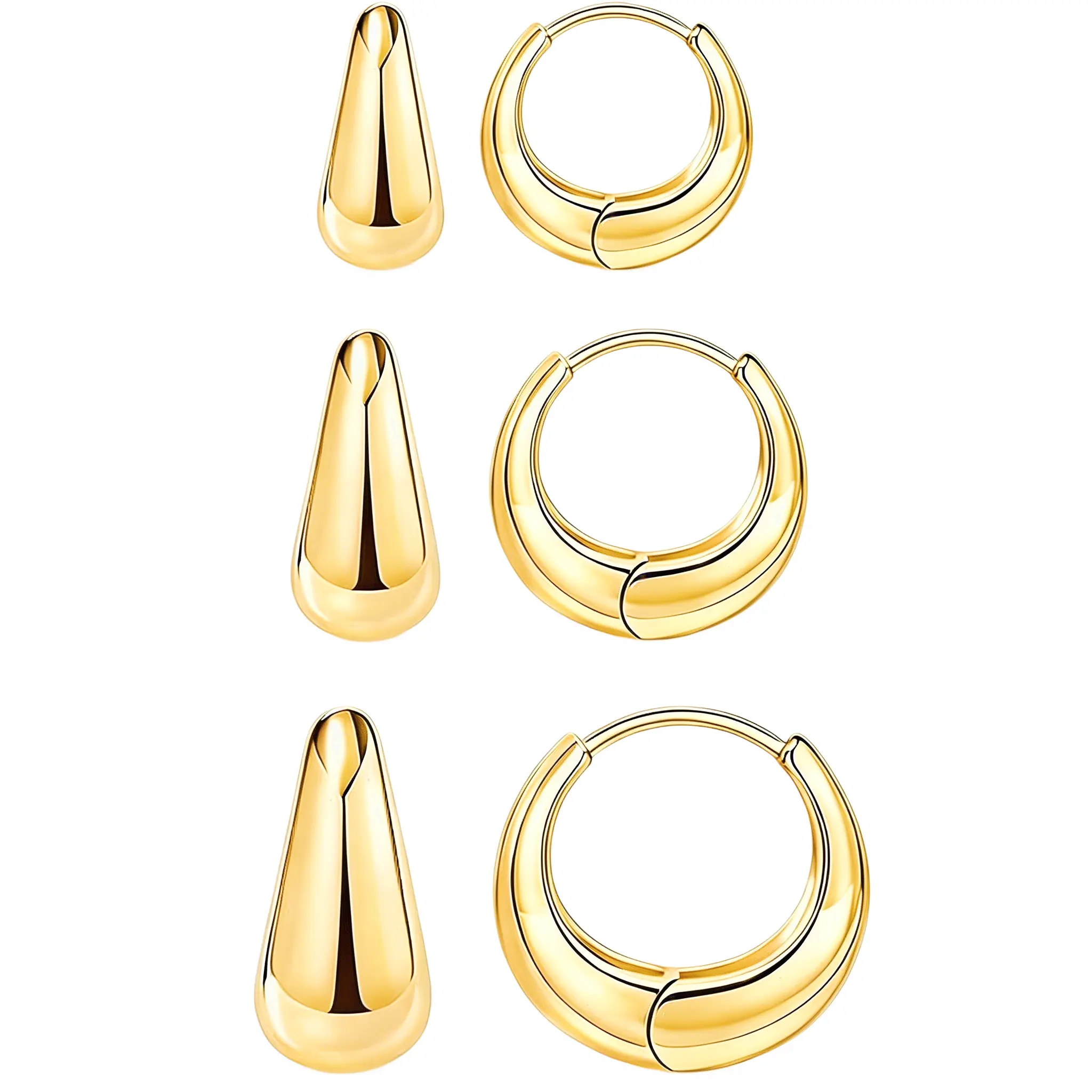 Includes 3 pairs: 8mm / 10mm / 12mm. Ideal for multiple piercings. Minimal yet eye-catching waterdrop design. From subtle to statementāstyle it your way.