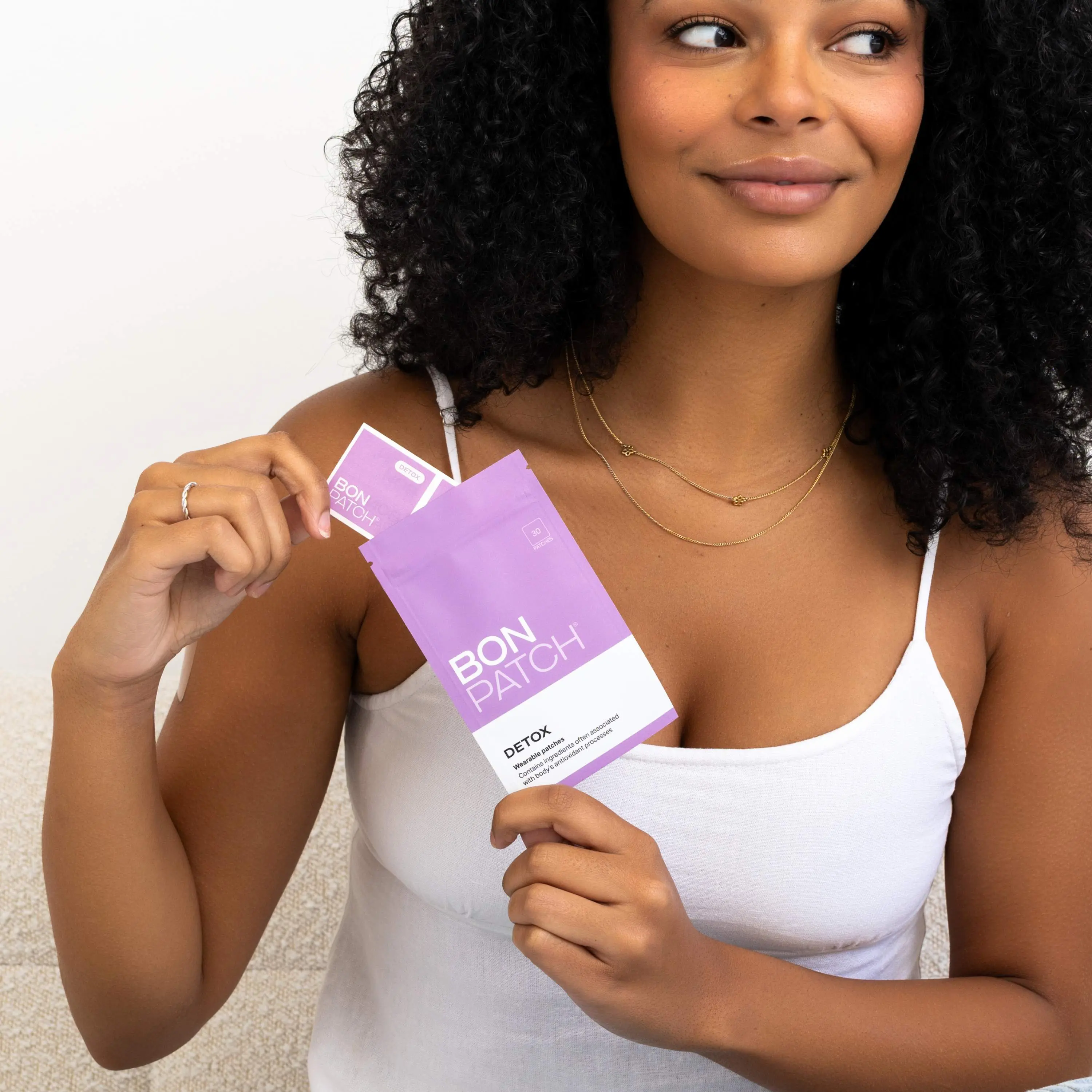 BonPatch Renew is a botanical body patch made with a blend of plant-based ingredients including glutathione, n-acetyl cysteine, niacin, thiamine, and ginger essential oil. Apply to clean, dry skin. Disposable, single-use.