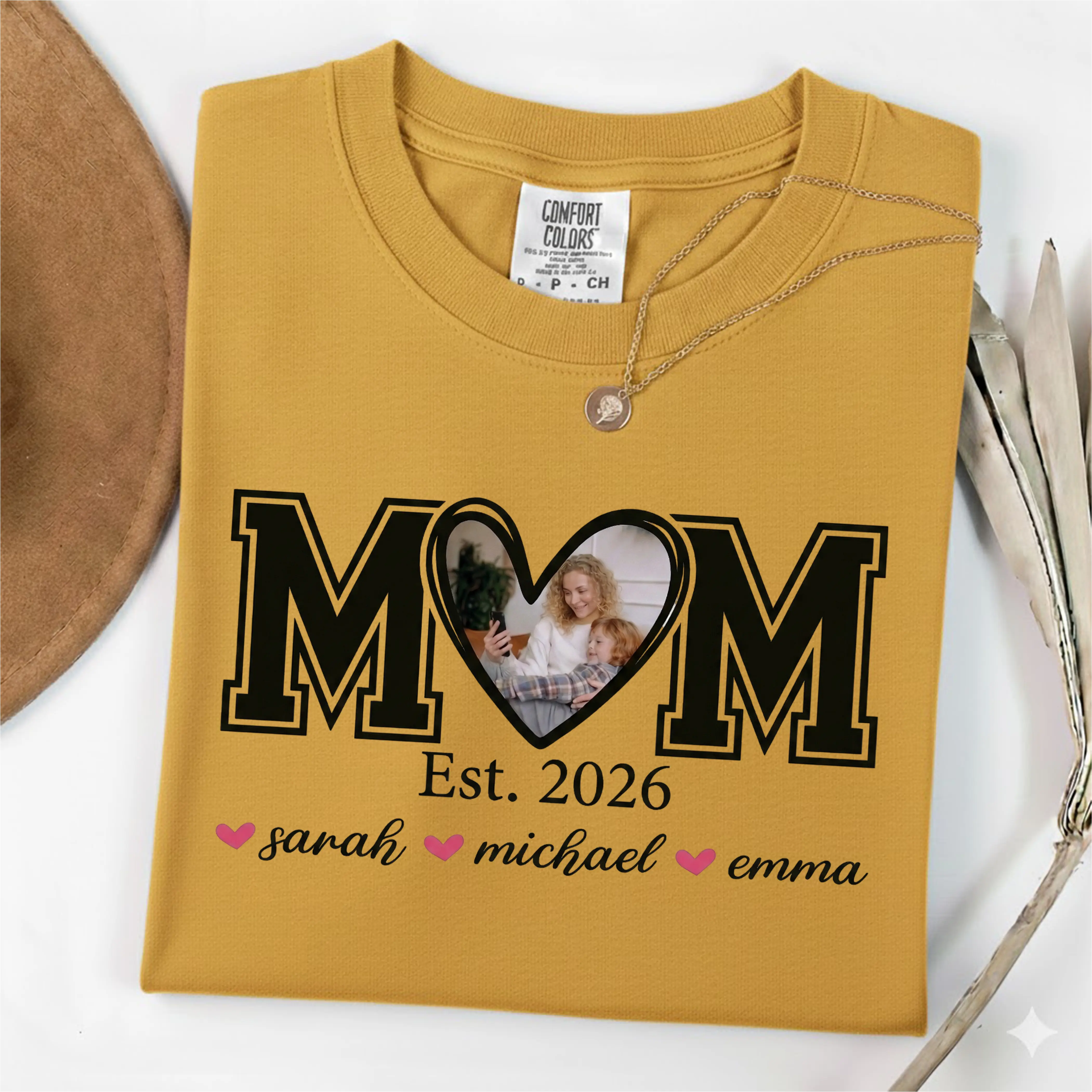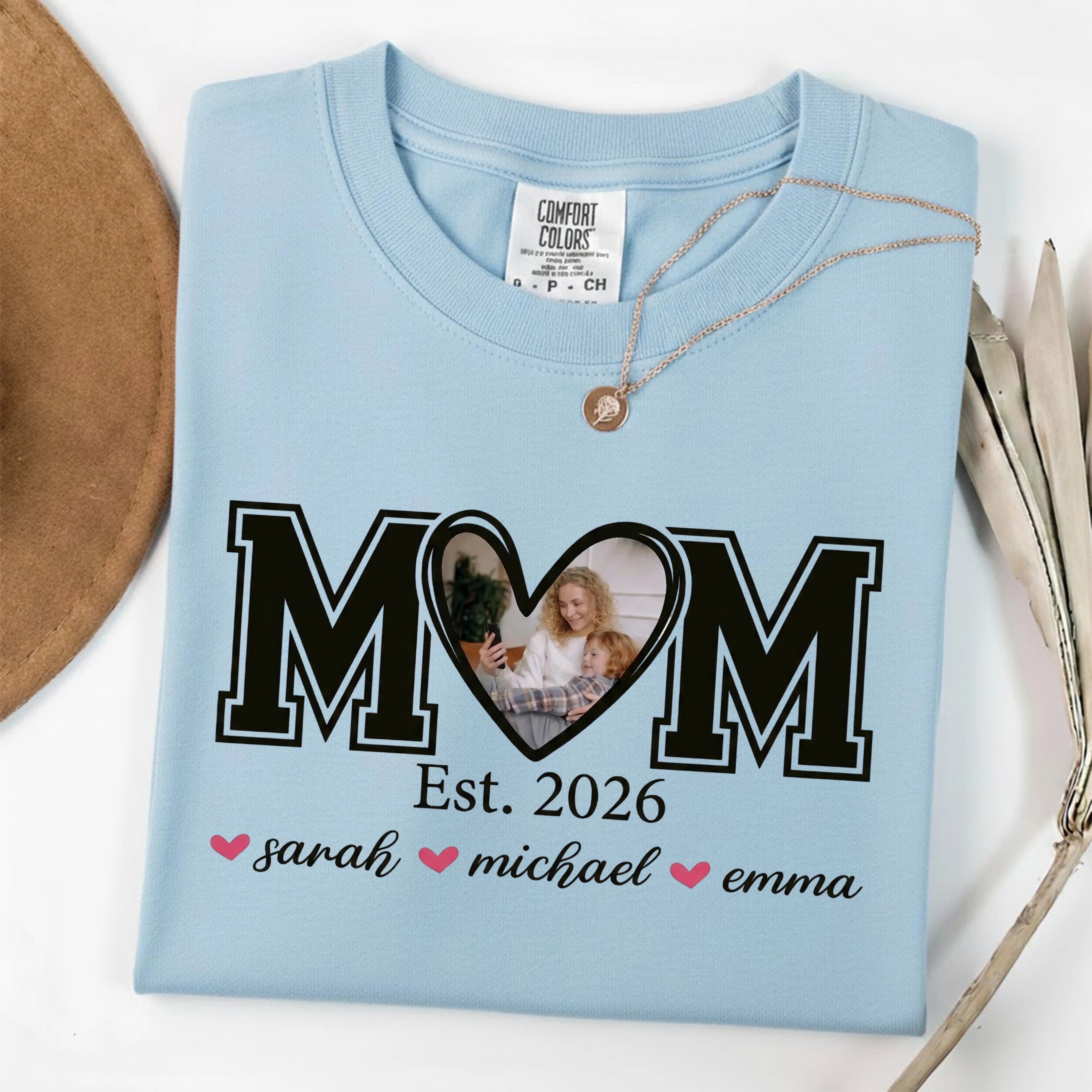 Customizable Design: The "MOM Est. 2026" shirt features a unique heart-shaped design with a family photo and the names of your children. Personalize it to create a special, meaningful gift for any mom.