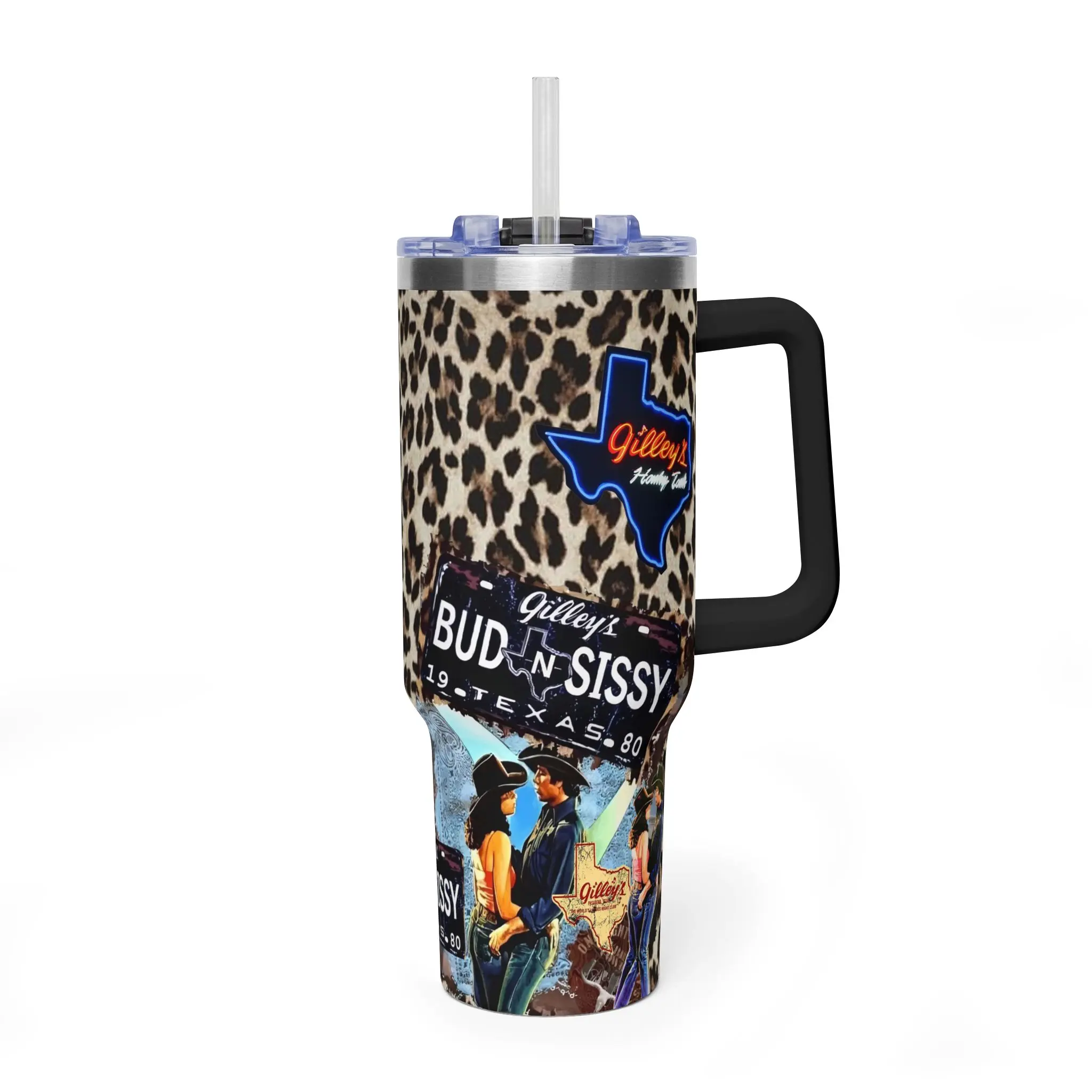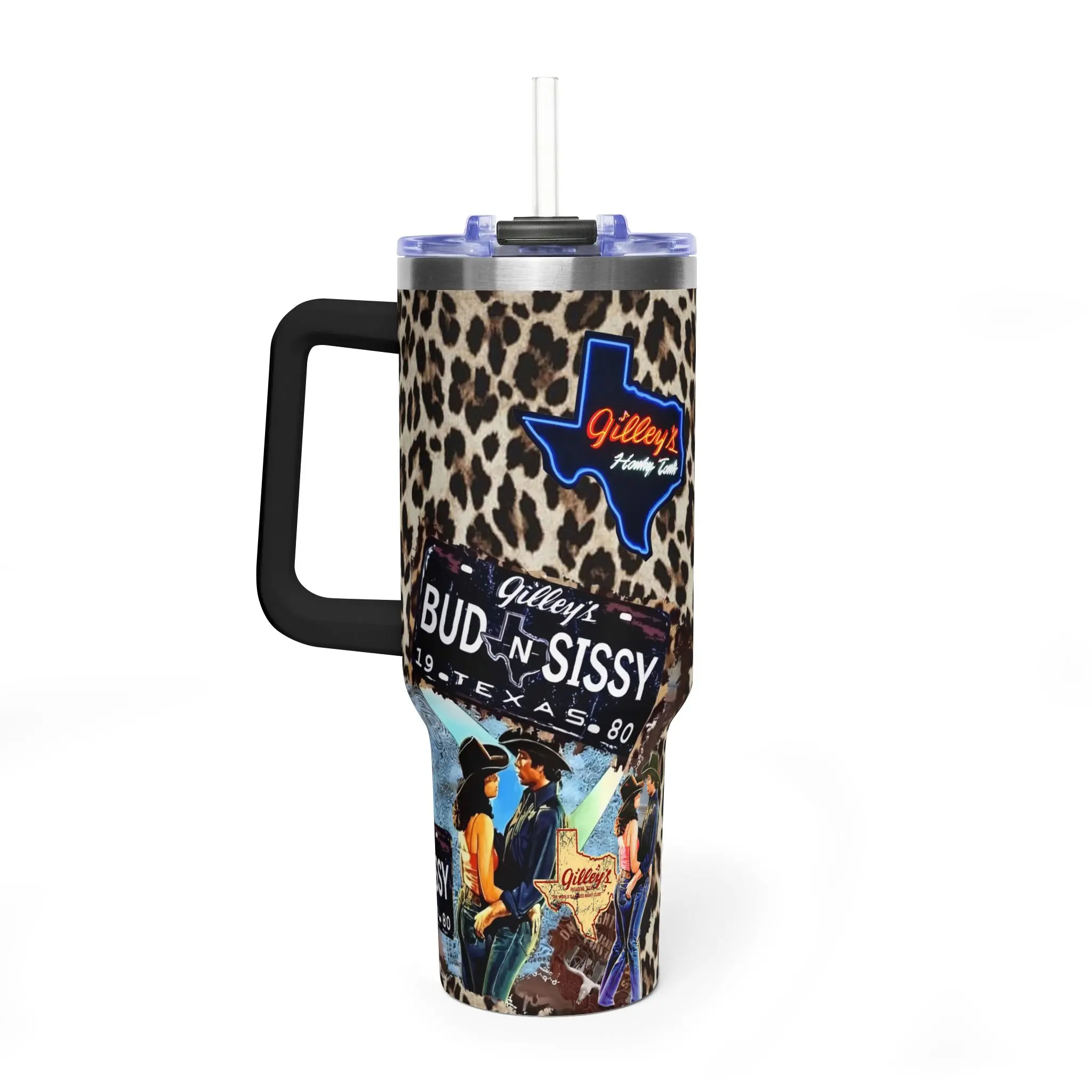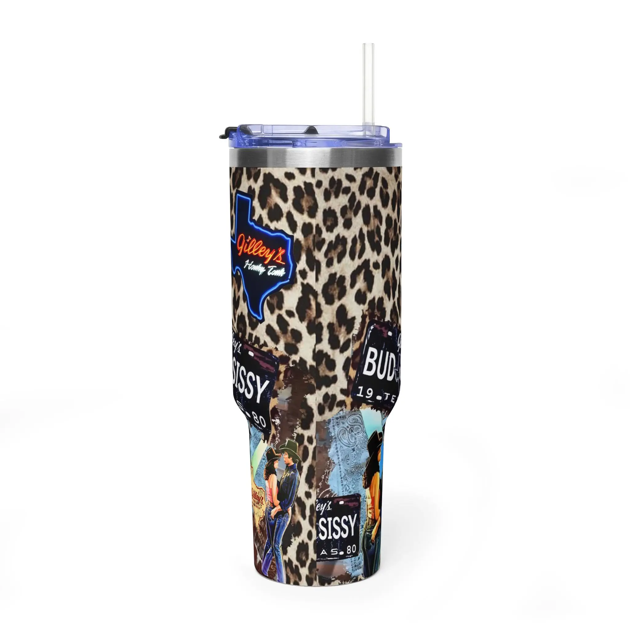 Urban Cowboy 40oz Tumbler, Bud and Sissy Gilley's Bar, Western Movie Merch, Insulated Travel Coffee Mug with Straw and Lid