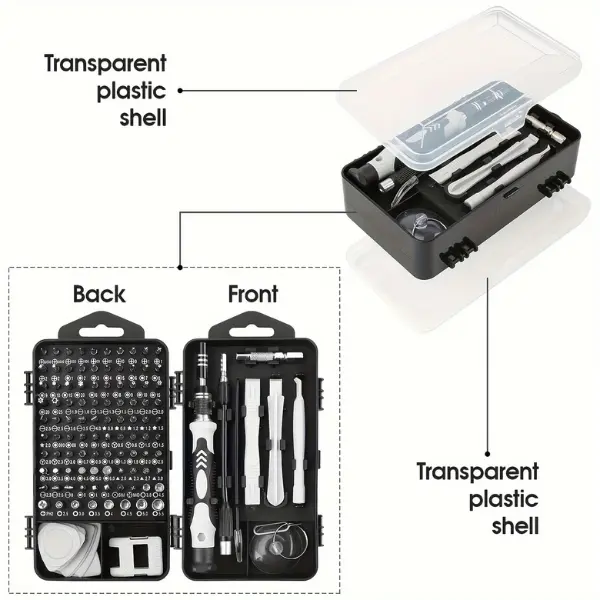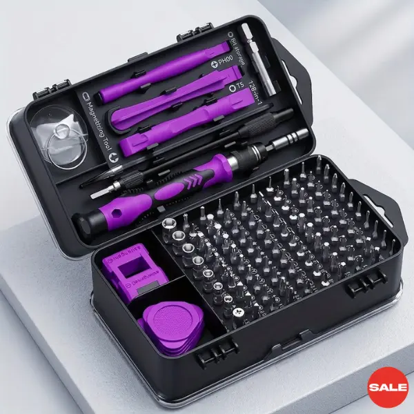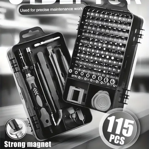 Upgrade your repair tools with this 115-in-1 Precision Screwdriver Set, designed for professionals and DIY users. It includes a wide range of interchangeable bits, making it ideal for repairing smartphones, laptops, watches, glasses, and other electronics.