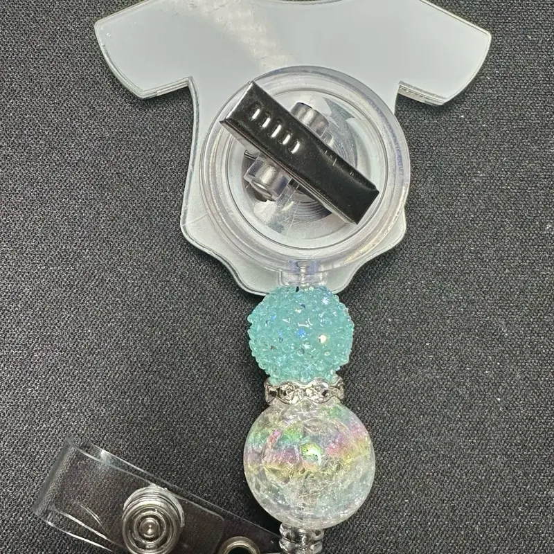 This listing is a badges reel design come with alligator clip acrylic and silicone beads.