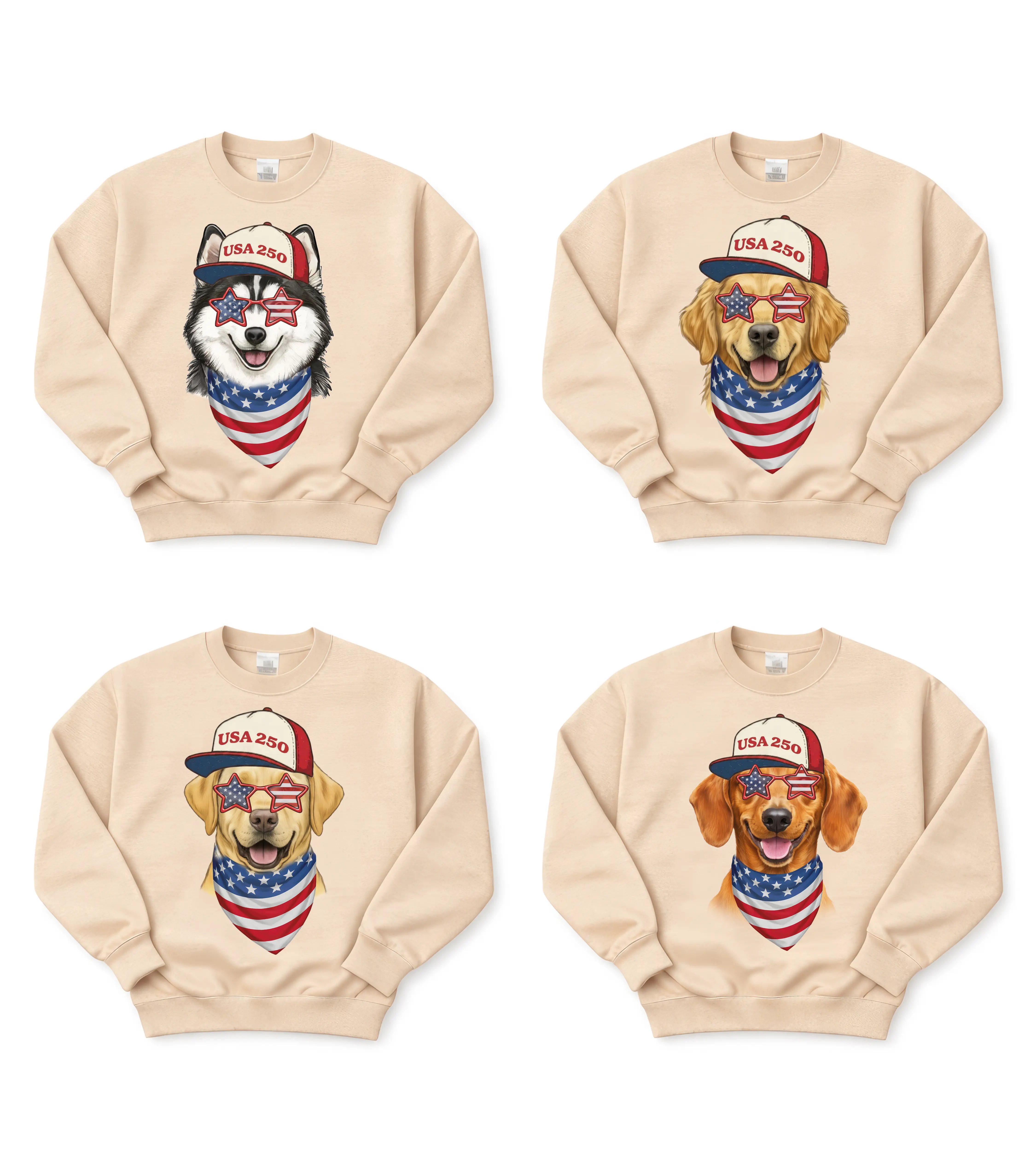 USA 250 Patriot Dog Sweatshirt Sport Grey & Sand - (25 Dog) Custom Patriotic Puppy for Dog Lovers