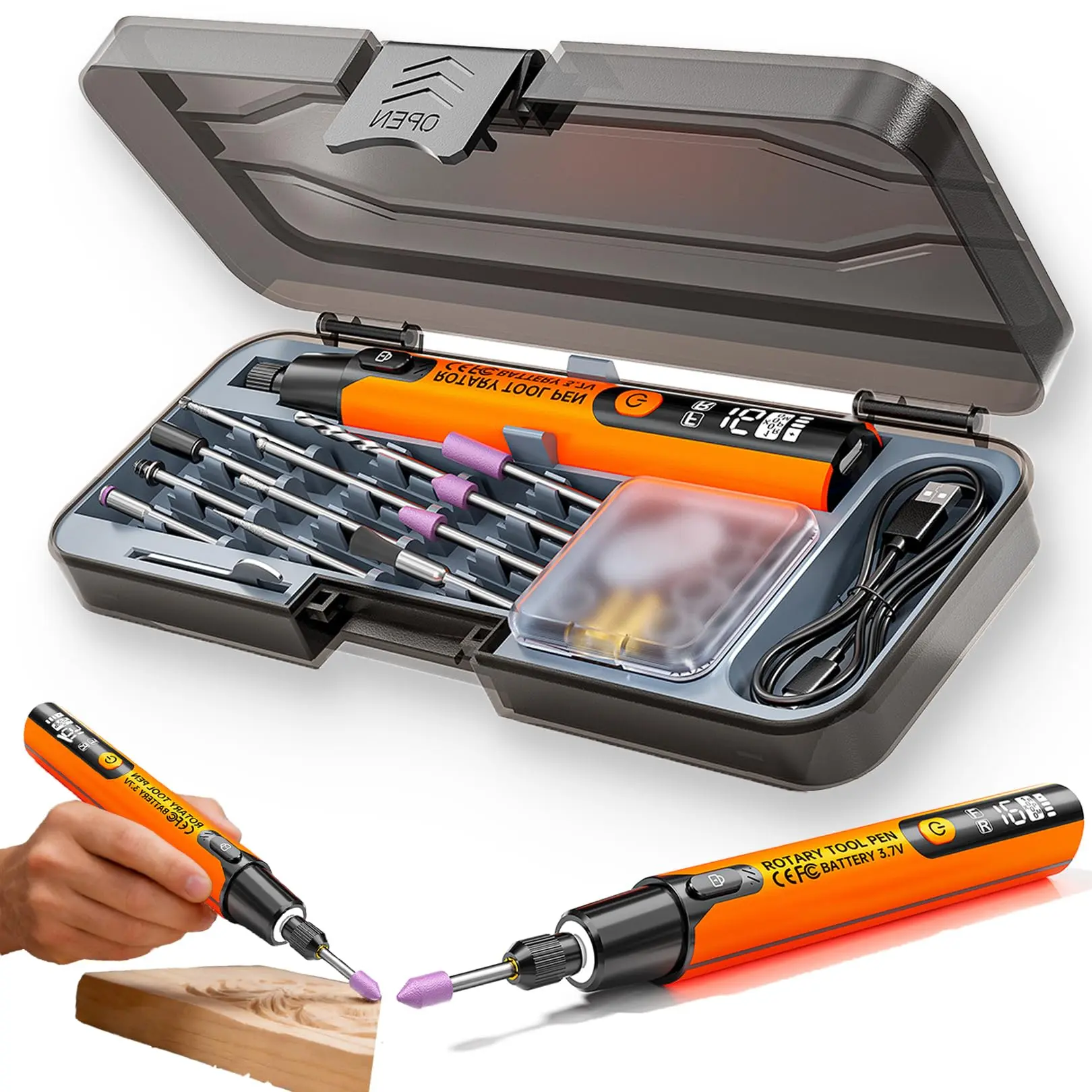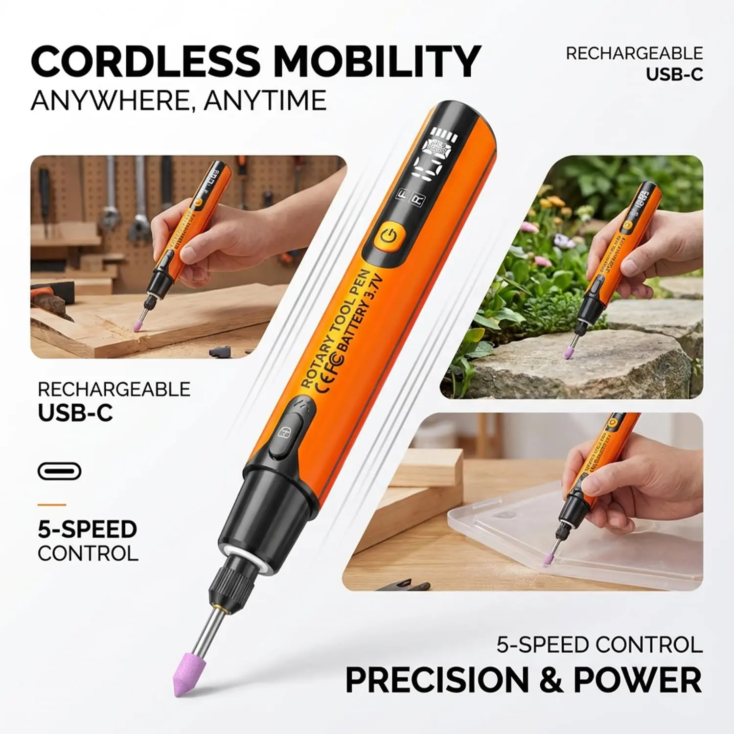 ·【LED Digital Display for Precise Control】 The mini cordless rotary tool is equipped with a clear LED digital screen. It shows real-time speed levels directly, accurate operation for engraving, grinding, polishing and carving tasks.