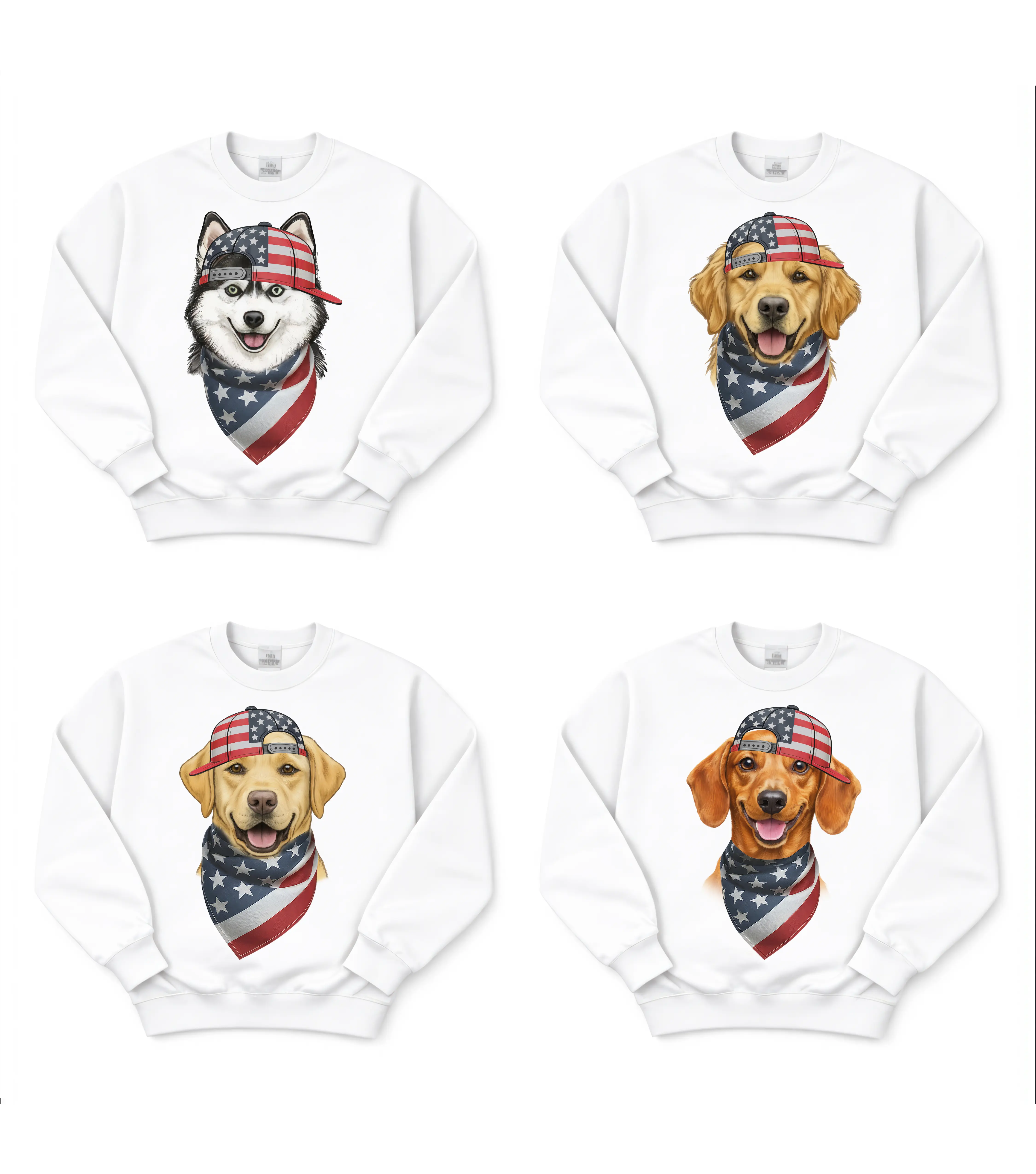 Dogs Patriotic Graphic Sweatshirt Black & White – 25 Cute Dogs Wearing American Flag Hats