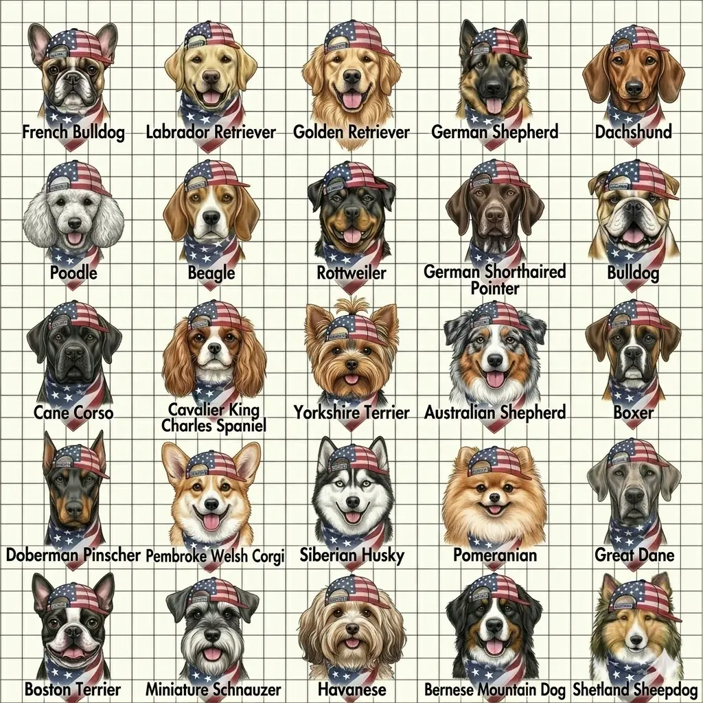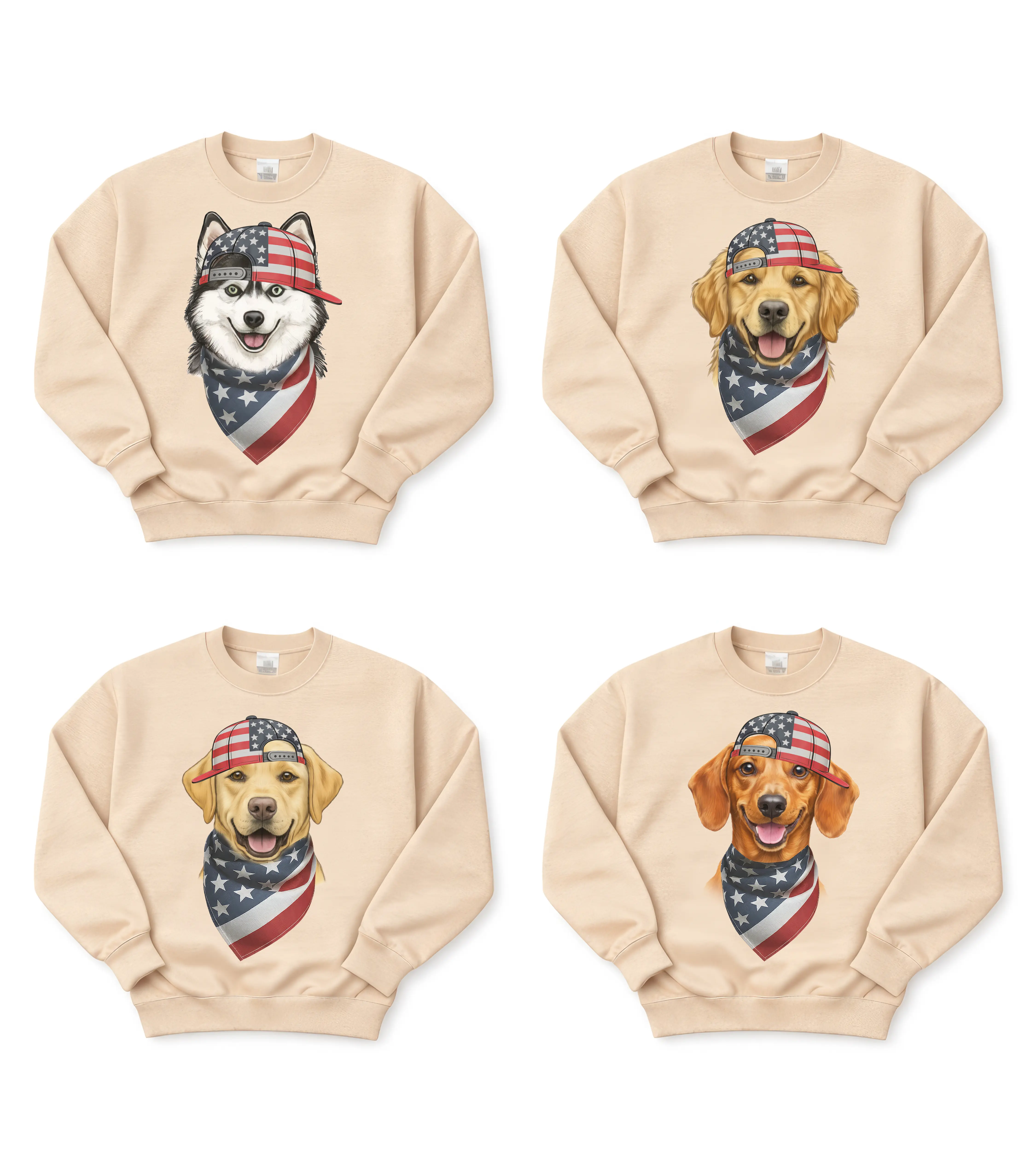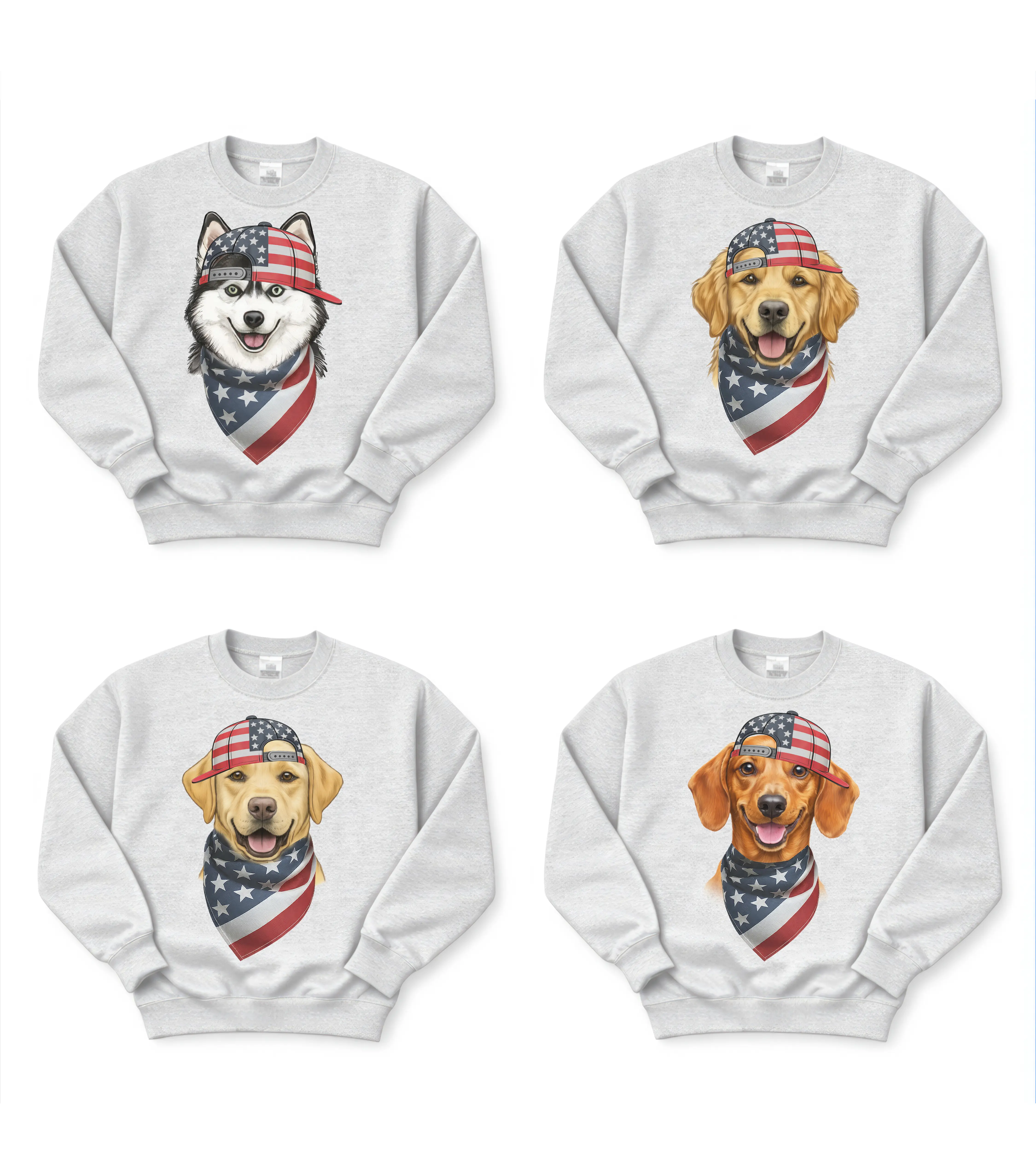 Dogs Patriotic Graphic Sweatshirt Sport Grey & Sand – 25 Cute Dogs Wearing American Flag Hats