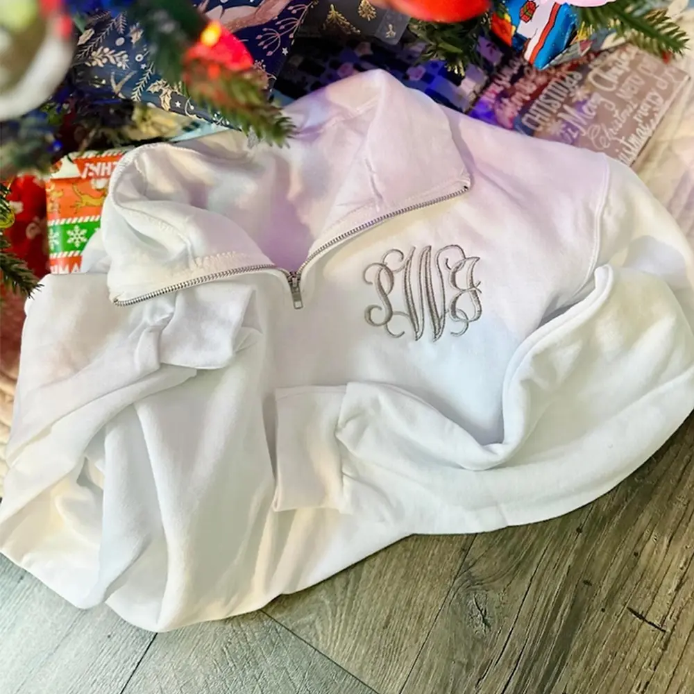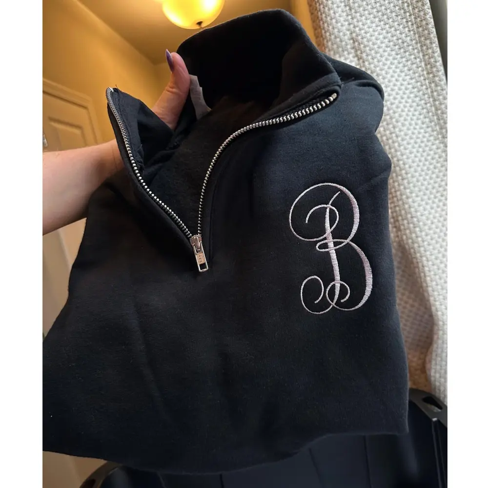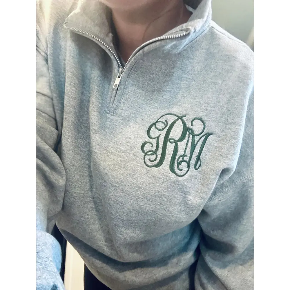 Custom Monogram Embroidered Quarter Zip Sweatshirt, Personalized Name Pullover, Outline Letter Crewneck, Minimalist Gift for Her, Gigi Style Sweatshirt