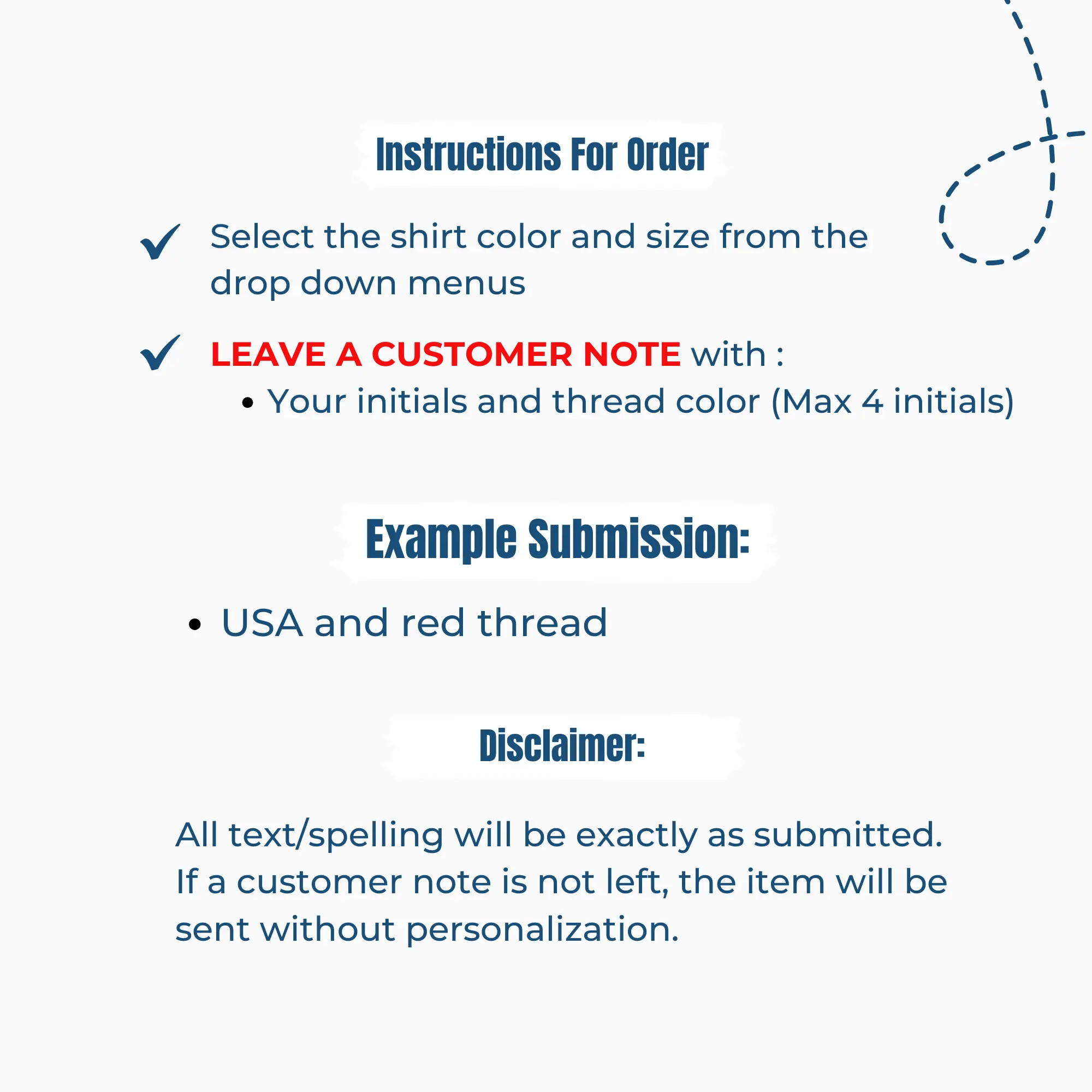 ·Your initials and thread color (Max 4 initials)