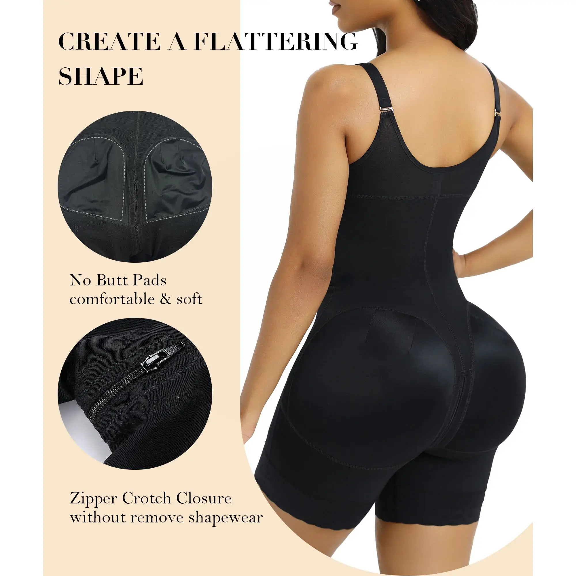 Women's shapewear, tummy control and butt lifter shaper for women, waist control, with zipper crotch and detachable shoulder straps, elastic description