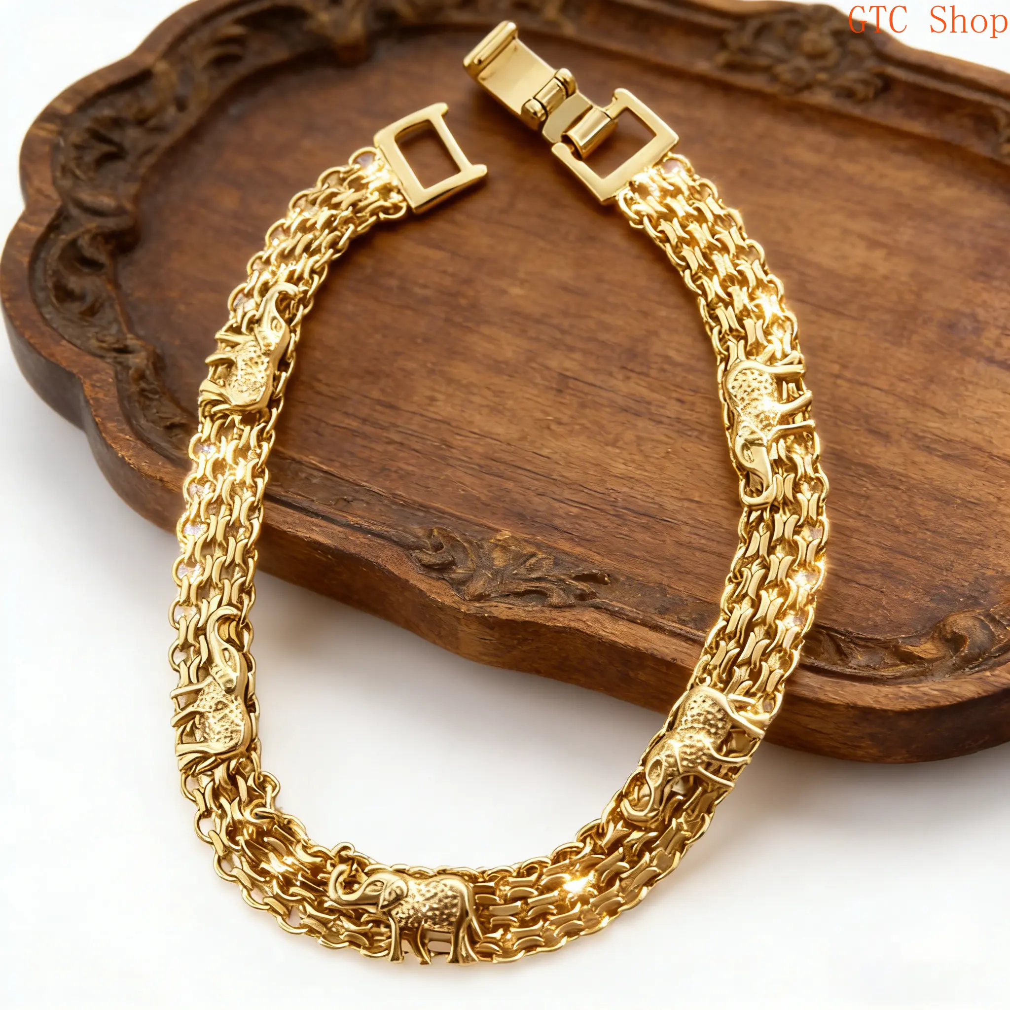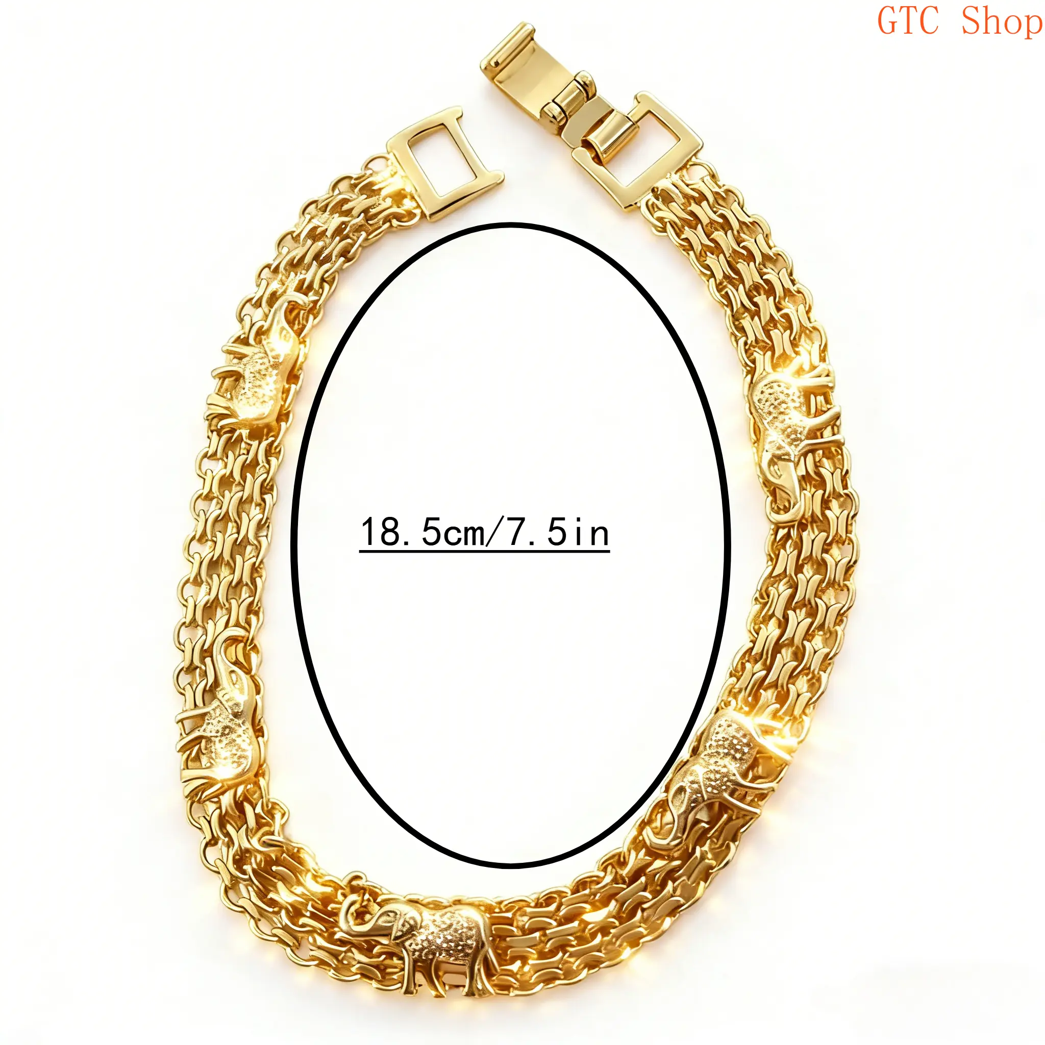 This Elephant Bracelet is the perfect addition to your jewelry collection. Key Features: - Unisex design - Elephant charm - 7 inches long Crafted with attention to detail, this bracelet features a beautiful elephant charm that adds a touch of uniqueness to your style. The gold plating gives it an elegant and timeless look that will elevate any outfit. Whether you're dressing up or down, this bracelet is versatile and can be worn for any occasion. At 7 inches long, it will fit most wrist sizes comfortably. Perfect as a gift for yourself or your loved ones. Add some charm to your style with this stunning elephant bracelet!