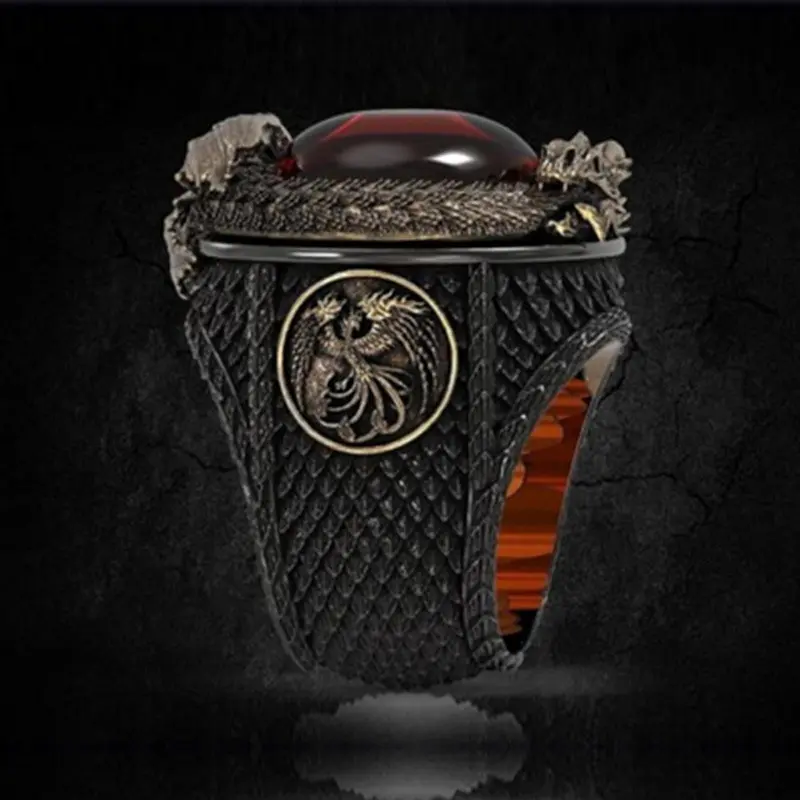 Vintage Dragon Ring for Men, Bold Domineering Dragon Shape Band, Electroplated Fashion Statement Jewelry, Cool Punk Style for Daily Wear, Streetwear & Biker Accessory
