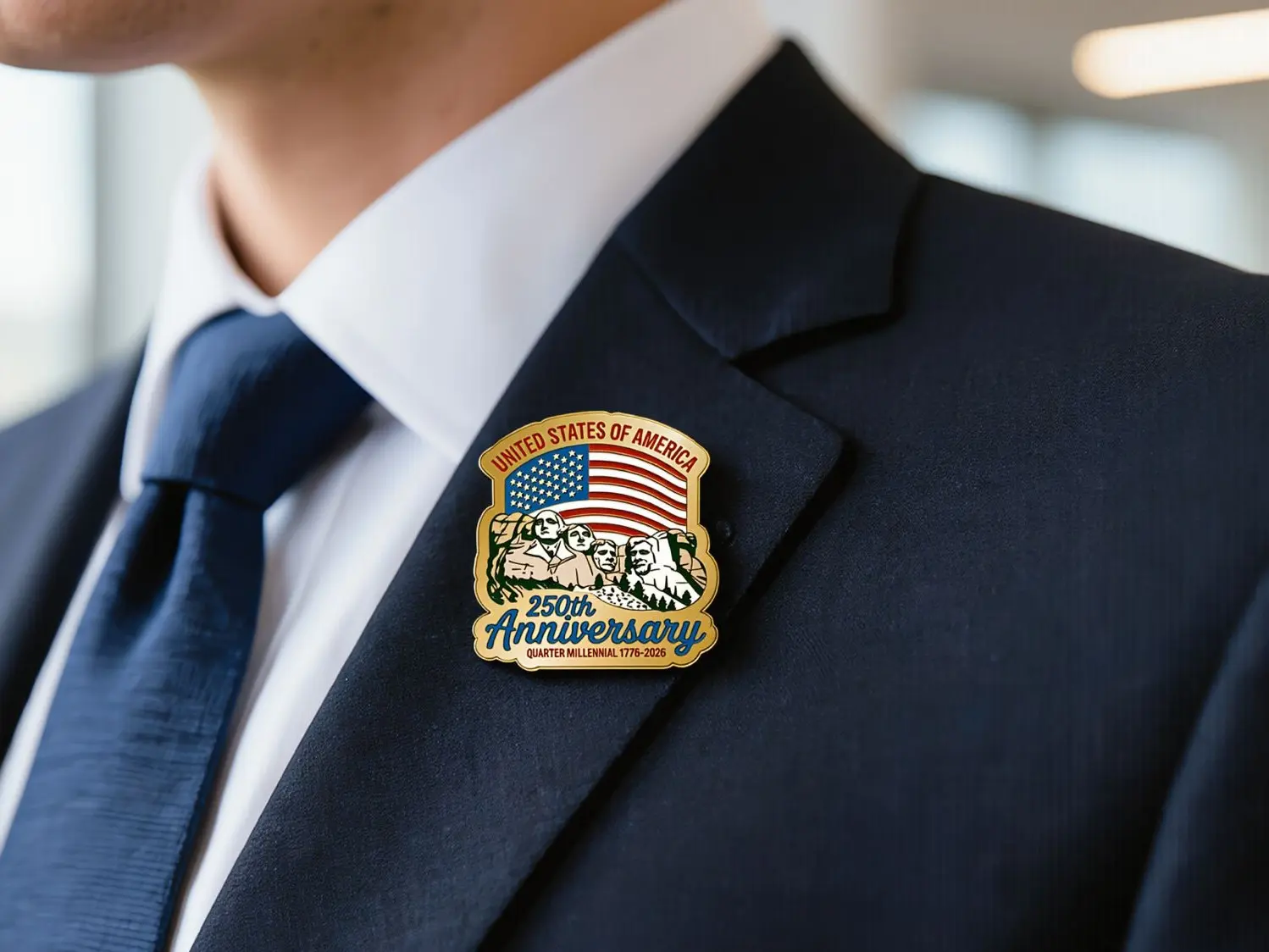 Own a piece of history with this premium commemorative enamel pin. Featuring the majestic Mount Rushmore and the flag, this pin is the ultimate keepsake for the 1776-2026 milestone, branded with the prestigious "Quarter Millennial" title.