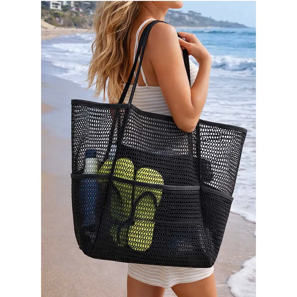 Personalized Embroidered Mesh Beach Tote Bag