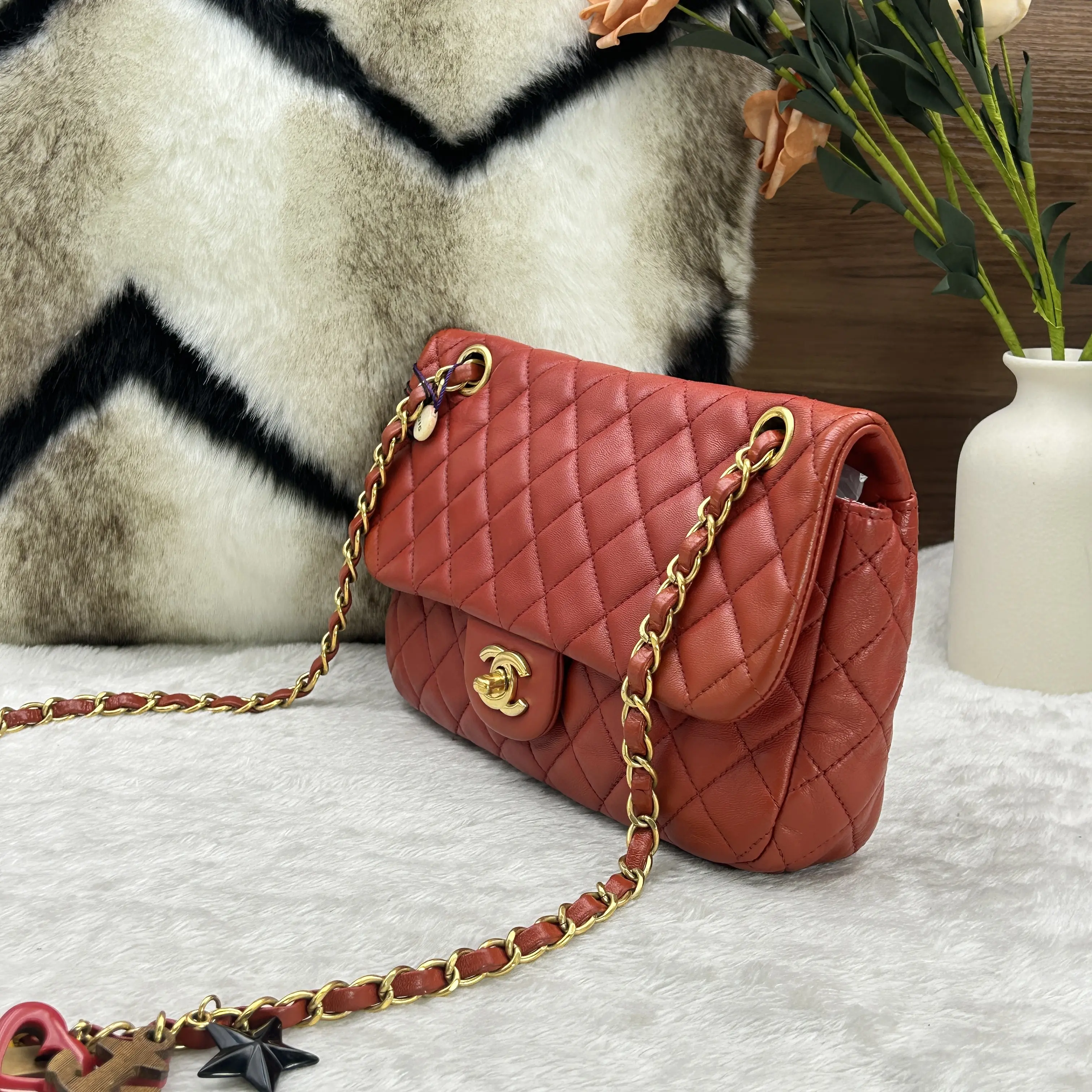 Pre-owned CHANEL Limited Edition Classic Flap (CF) Baguette Bag – Gold Coin Pink with Gold Hardware